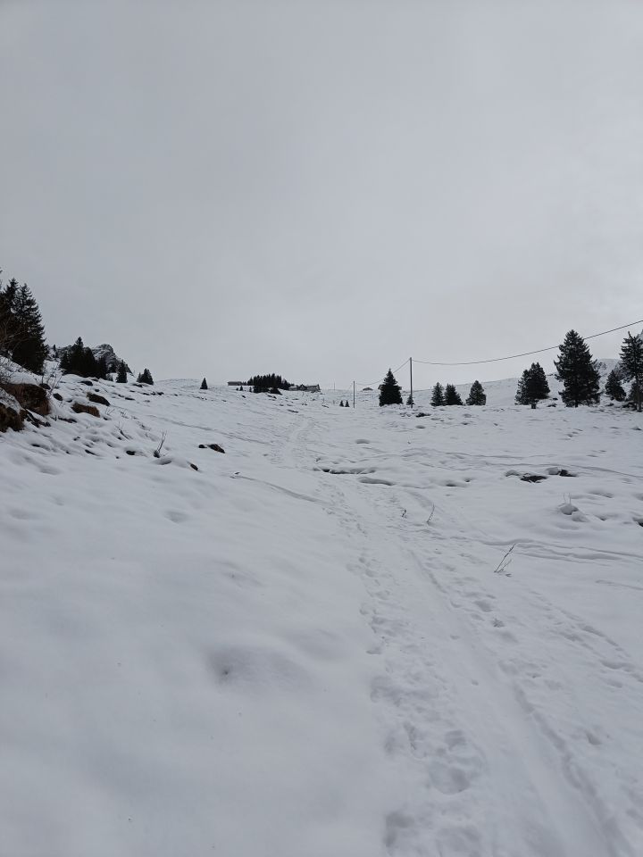 Der Regen vom 14 Dezember hat im Hoch Ybrig Gebiet bis an die Gipfel alles durchnässt. Bis zur Waldgrenze hat's wenig Schnee ohne Unterlage, und der ist gefroren. Darüber hat's brutalen unfahrbaren Bruchharsch wobei der Schnee unter dem Harsch Deckel nass ist.