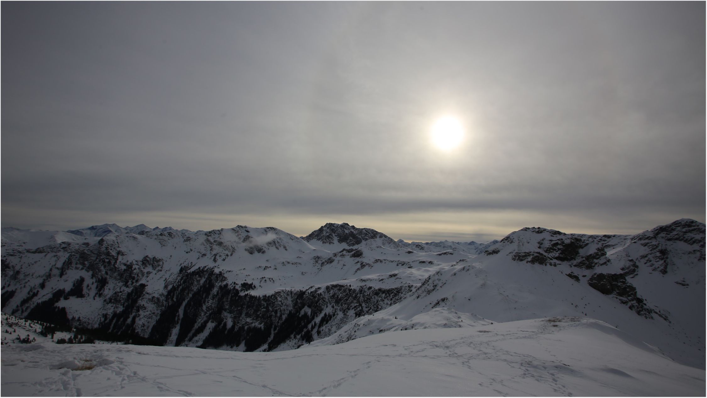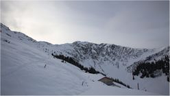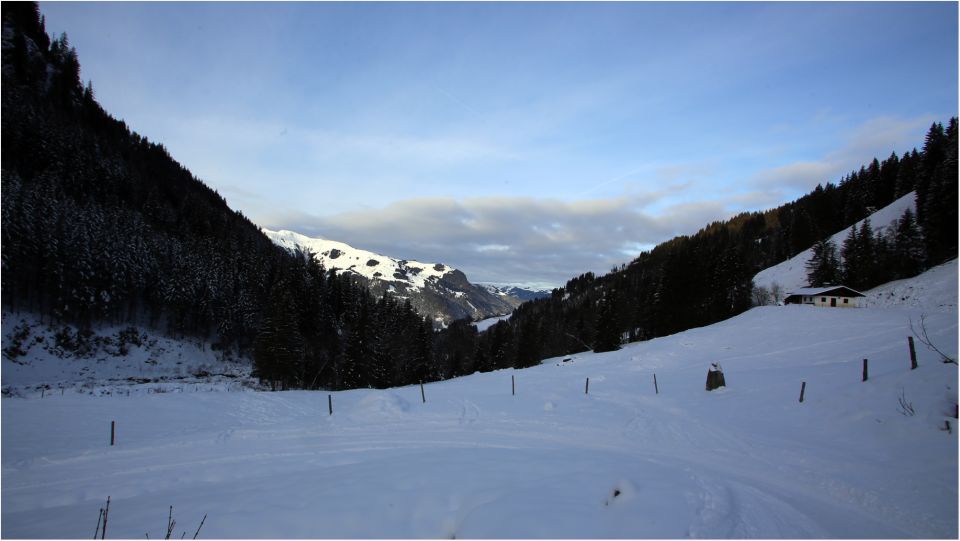 Natürlich liegt auch hier zu wenig Schnee, aber der Forstweg iust festgefahren, deshalb geht es hier ohne Felsberührung. Ab Staffalm natürllich, wie anderweitig auch grundloser Neuschnee ohne oder mit nur unzureichender Unterlage. Mekt man beim LAufen nicht so aber beim Runterfahren.