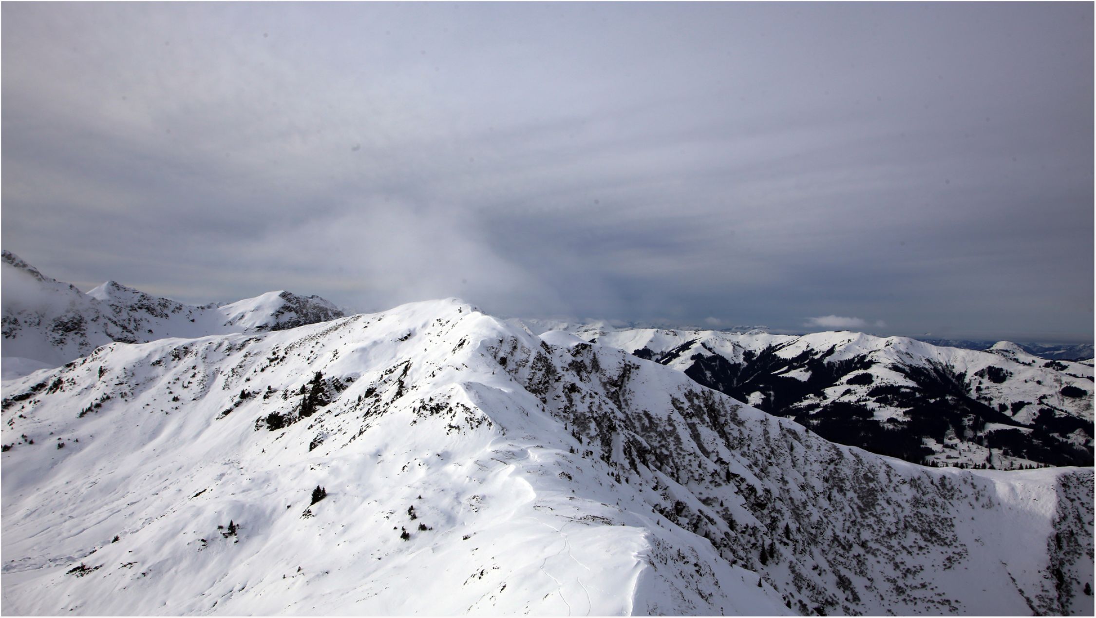 Gipfelhang vomn Staffkogel Bruchharsch, ab Saalkogel bis zur Forststrasse mehrheitlich Pulver ohne oder mit nur wenig Unerlage. Vorsichtige Fahrweise ist angesagt. Aber insgesamt soweit OK