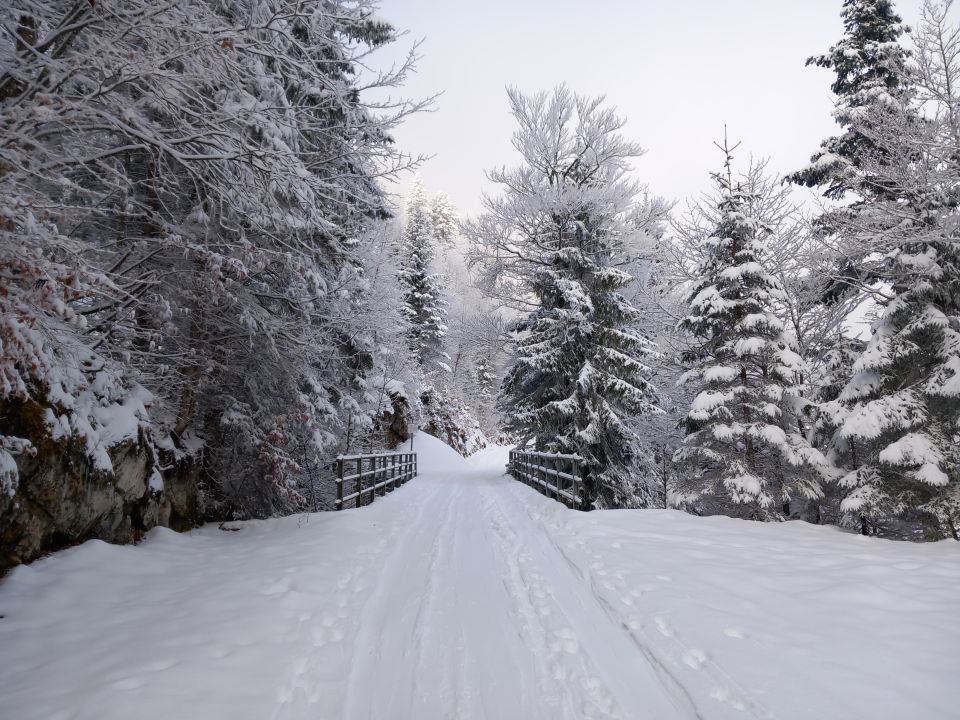 Die Ski können grad am Start Alpstrasse montiert werden. Bis zur ersten Brücke dünn aber ausreichend gedeckt. Ab dann sehr gut gedeckt.