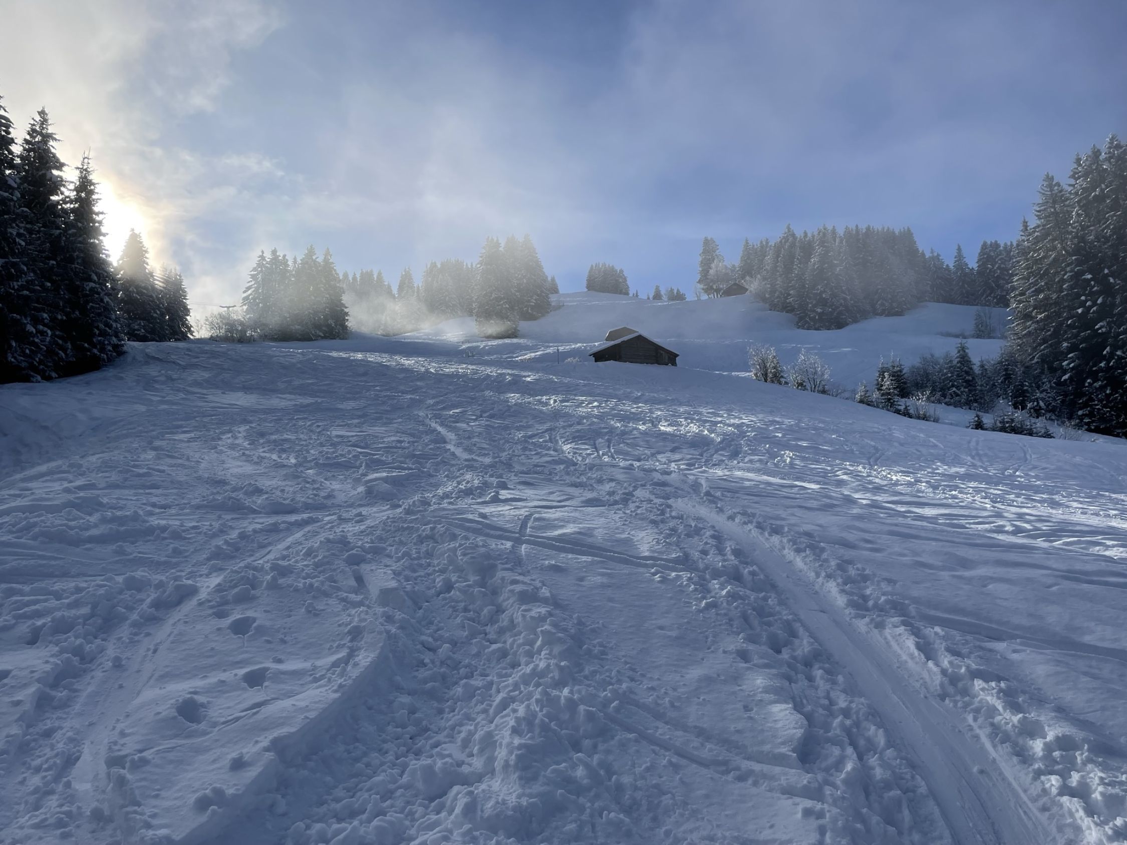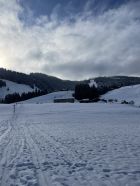 Wenig Schnee aber bei diesem Berg OK. Viele Spuren aber alles in allem gute Verhältnisse. Oben durch die Spuren teilweise etwas ruppig aber keinen Steinkontakt. Im mittleren und unteren Teil kann gut den Abfahrtspuren folgen gecruised werden.