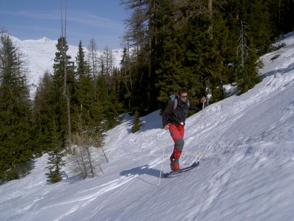 Aufstieg auf tragender Schneeoberfläche. Abfahrt in prima Sulz um 11 Uhr. Später nicht mehr empfehlenswert.