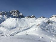 Die Südflanken wie z.B. Piz Belvair und Viroula Pitschen haben schon einen leichten Deckel von Sonne!