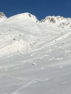 Start Bahnhof Madulain 8.30, minus 20 Grad, blauer Himmel, windstill. Bis Alp Es-cha Dadour präpariertes Alpsträsschen. Ab Punkt 2120 Richtung Val Müra resp. Chamanna d’Es-cha nur noch ganz alte eingeschneiten Spur, nur für Orientierung gut, sonst war spuren angesagt. Für Aufstieg genügend Schnee, in der Ostflanke recht viel Schnee, hier hat es aber auch zahlreiche grosse Felsbrocken. Abfahrt war dann nicht so toll, leider viel Steinkontakte und Vorsicht war angebracht, da trotz viel Schnee schlecht oder keine Unterlage vorhanden. Ich bin mehr oder weniger der Aufstiegsspur abgefahren. Ab Waldgrenze dann genügend Schnee mit Unterlage und ganz ok, schöner Pulver. Aufstieg ausgezeichnet, Abfahrt knapp gut.