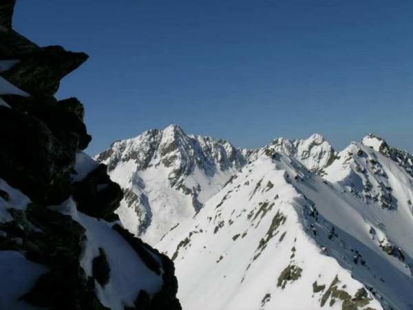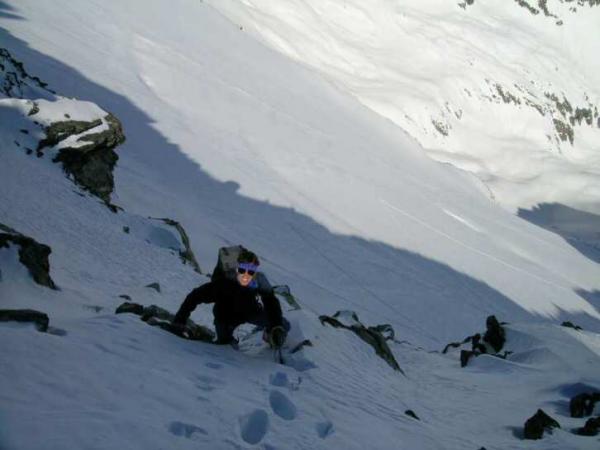 Start um 05:30 in Meiendörfli. Über die Brücke bei Litzigen, dann den Weg durch den Wald über Stäfeli in den wilden Kessel von Kartigel. Hier grosse Lawinenreste, was schon unten ist kann nicht mehr herunterkommen..... Nun über eine Rippe alles spurend, sehr steil, teilweise um die 40°, in schlechtem Schnee nach Brunni hinauf, wo wir dann bei etwa 2350m Frühstückspause machten. Danach ging es ziemlich direkt nach Süden den Kartigelfirn hinauf immer steiler bis zum Skidepot bei etwa 3080m, dort über 40°steil. Den Rest zu Fuss, ohne Steigeisen, gerade so machbar, teilweise über Schnee und brüchige Felsen, wieder sehr steil, zum Gipfel hinauf.