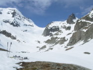 Steingletscher dann rechts haltend Richtung P2111 und Steilimigletscher, ca. auf Höhe 2500 dann nochmals rechts haltend zum Gipfel.