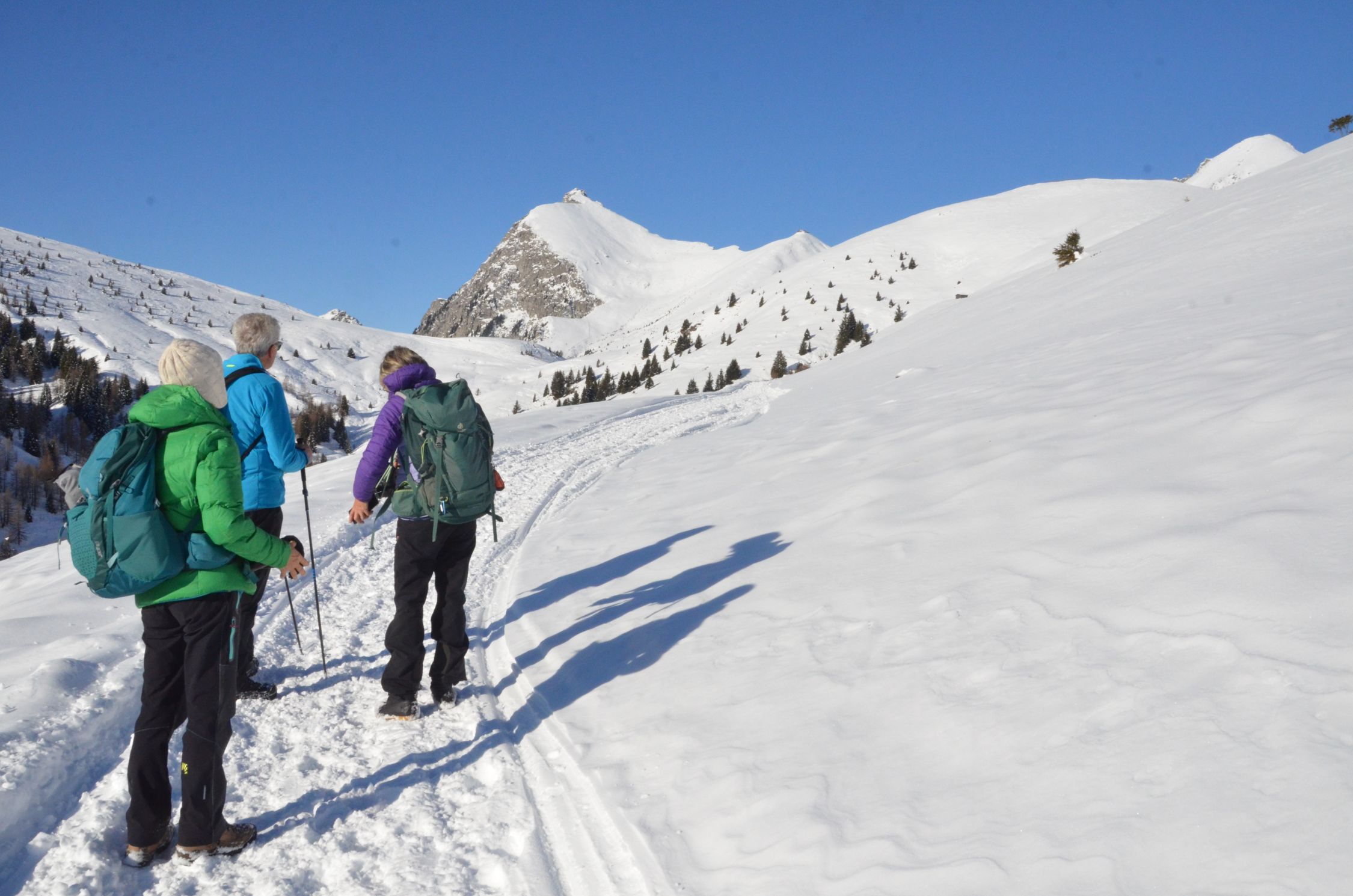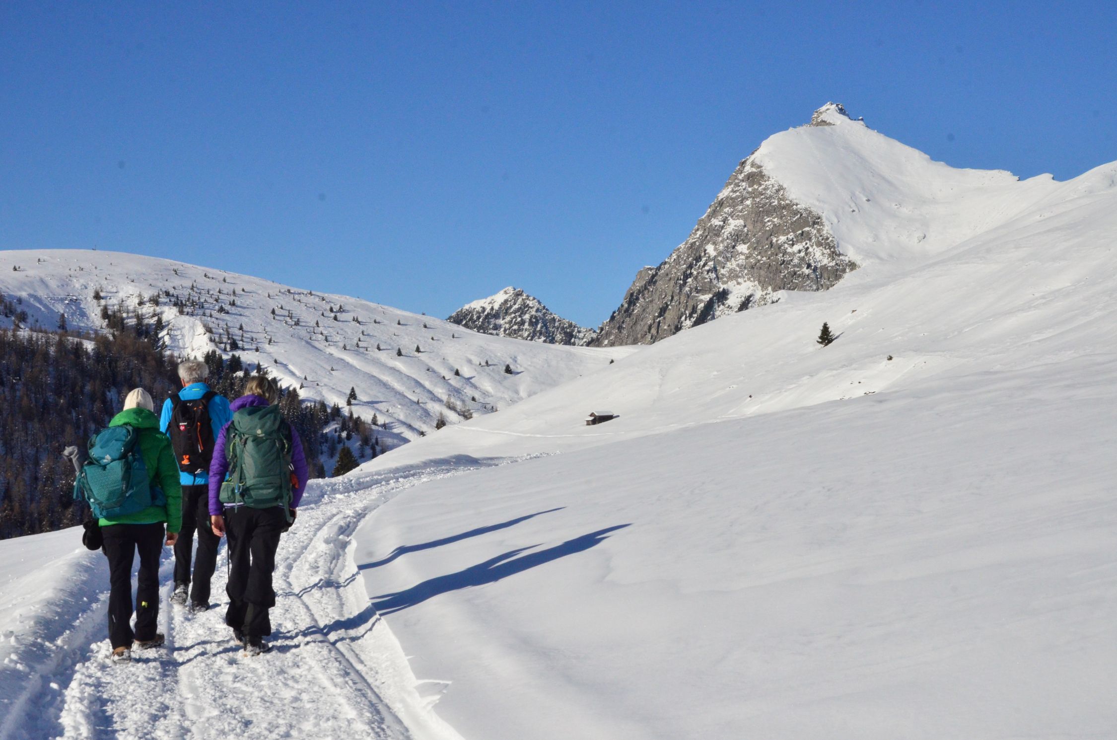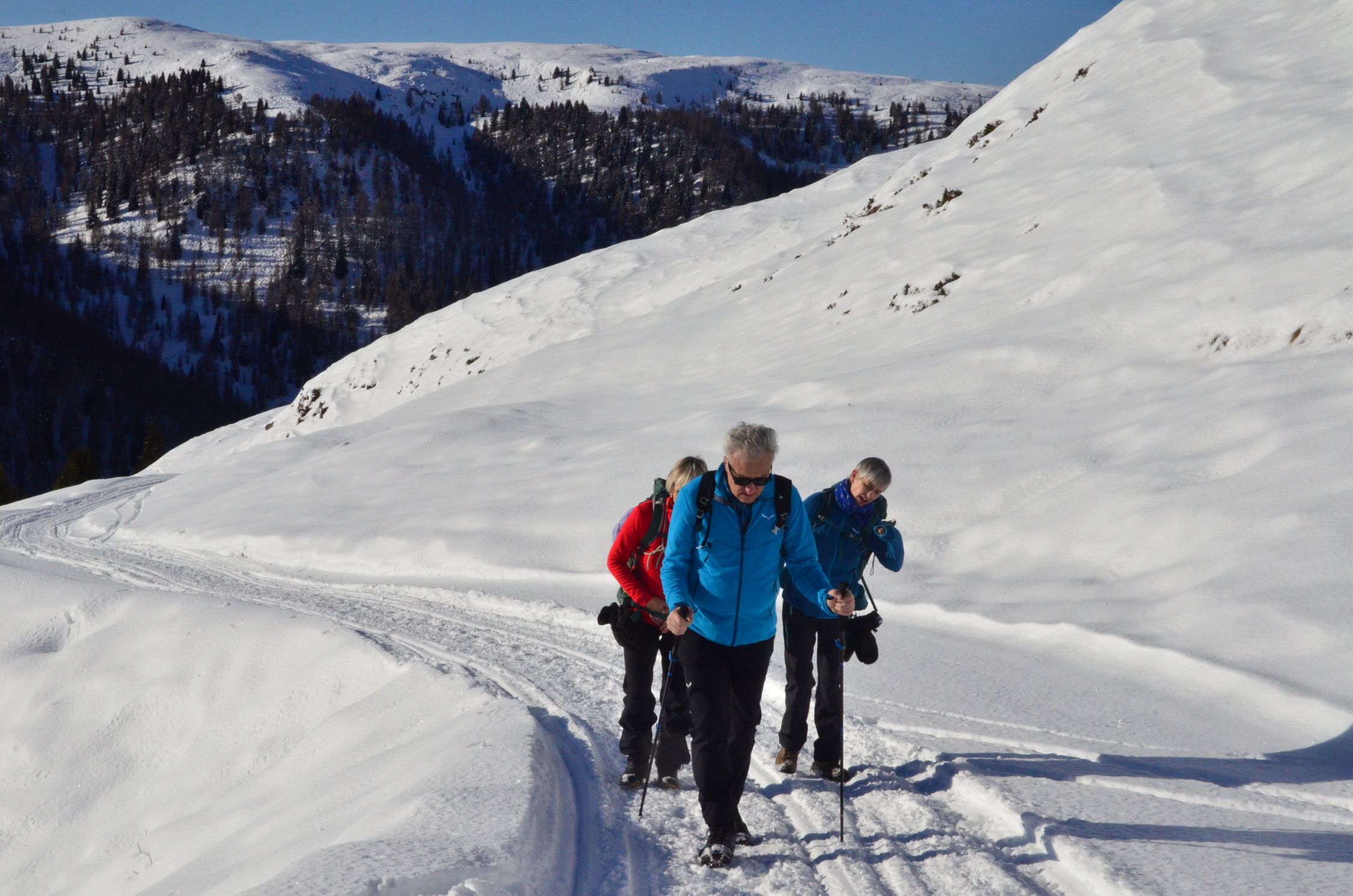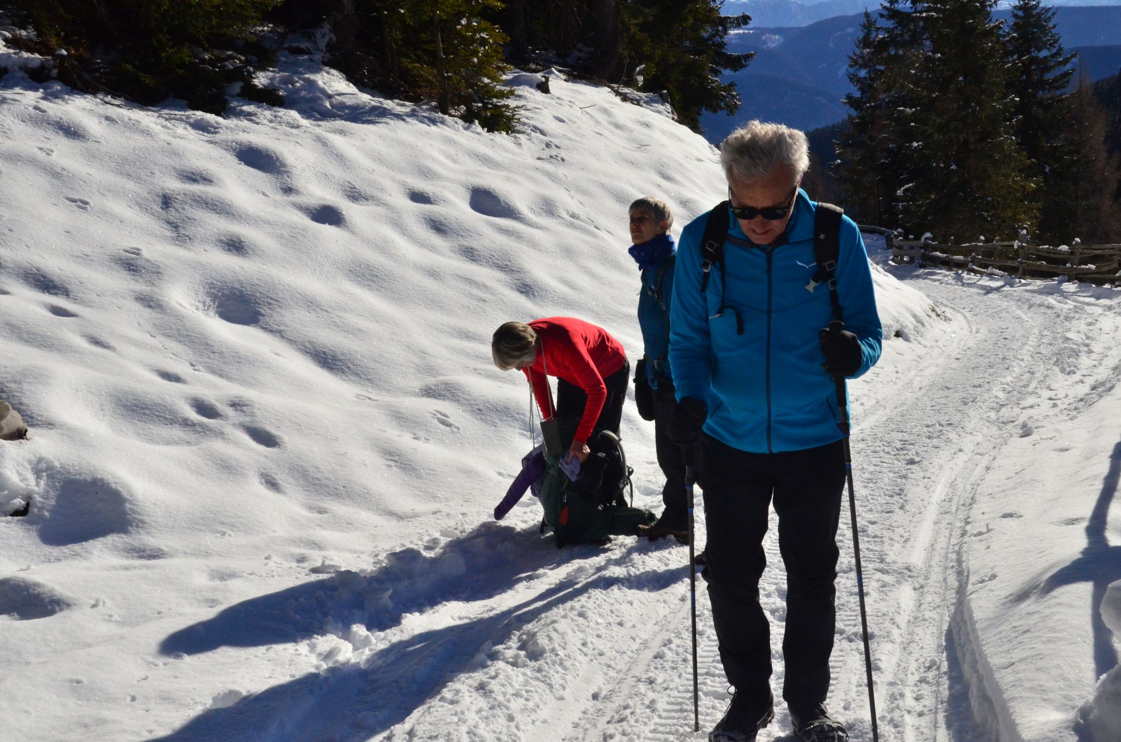 Die Forststrasse ist mit Schnee bedeckt. Mit normal guten Schuhwerk gut zu begehen.