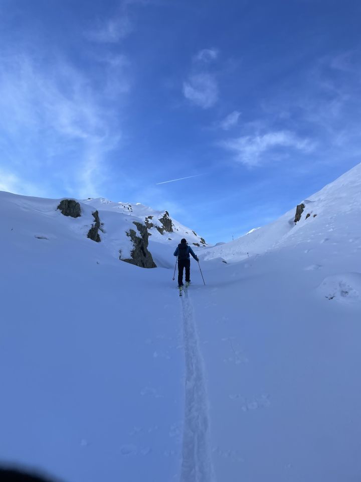 Wir waren alleine im Gebiet. Auf der Abfahrt trafen wir 3 Gruppen welche auf dem Weg zur Hütte waren.