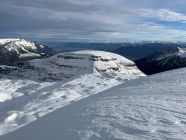 Schnee ab etwa 1500 m, Schneeschuhe sinnvoll ab etwa 1800 m. Es ginge aber auch ohne, denn die Unterlage trägt gut.