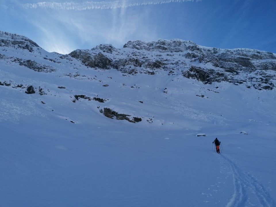 Es hat ca. 20cm Presspulver, Im unteren Drittel ein paar grössere Lawinen Kegel vom Regentag, sonst Tiptop. Zum Gipfel in Pulverschnee, hier und da etwas glatt. Boarder besser Steigeisen mitnehmen, Wildstrubel Mittelgipfel wurde auch gemacht, sehr Spaltig, Seilschaften alle am Seil hoch, Schwarzhorn wurde auch gemacht, unten sehr steinig, Steghorn war gut, siehe anderen Eintrag