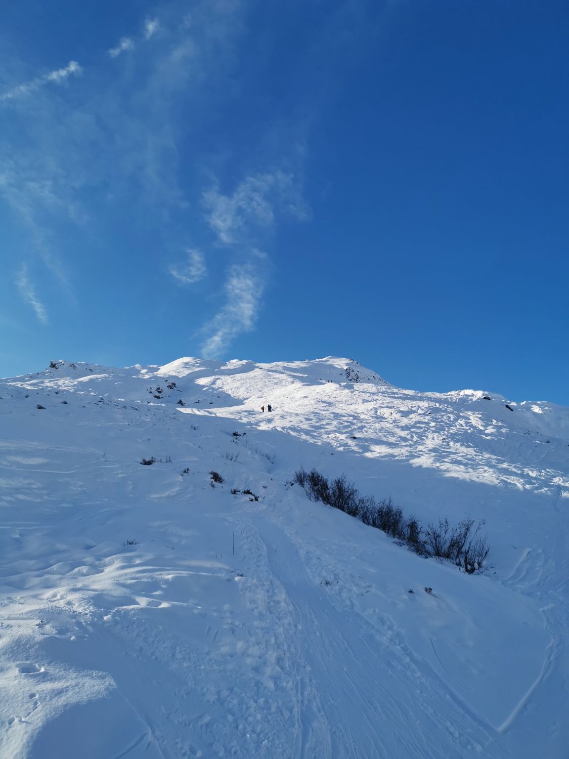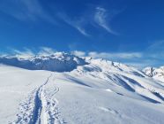Start mit den Skis beim Depo. Die Aufstiegsspur war perfekt und liess erahnen war in der Abfahrt folgte. Auf dem Gipfel leichter Wind aber mit Sonne angenehm. Der erste Teil der Abfahrt bis Unter Deiern war super. Nachfolgend wegen der geringen Schneemenge etwas ruppiger aber in Ordnung. Der Weg zum Laub mit Vorsicht fahren "Gegenverkehr".