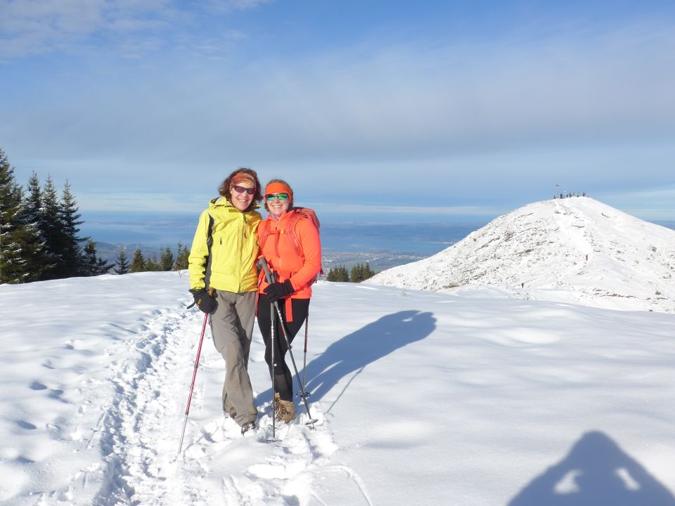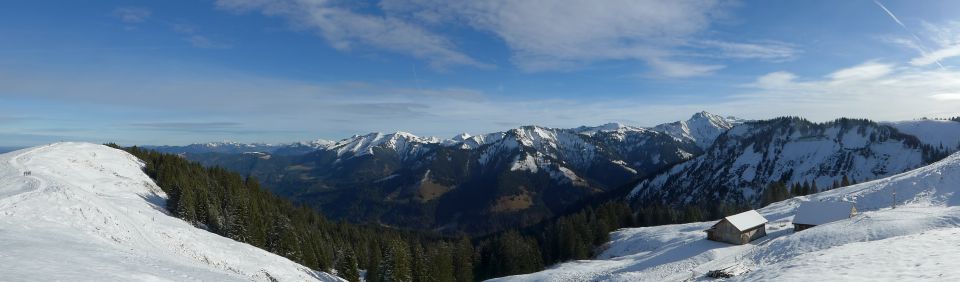 Sonnig, gute Fernsicht, am Gipfel starker Südwind, bis 1400 m schneefrei, danach ca. 5 cm Pulverschnee. Für eine Wanderung gut, für Skitouren schlecht.