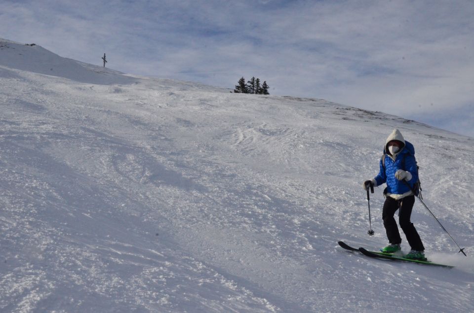 Schnee sehr hart, beim Aufstieg unserer route recht gut. Die Abfahrt auf der Piste ist mühsam, da sie zum Teil eisig ist. Vorsicht ist geboten.