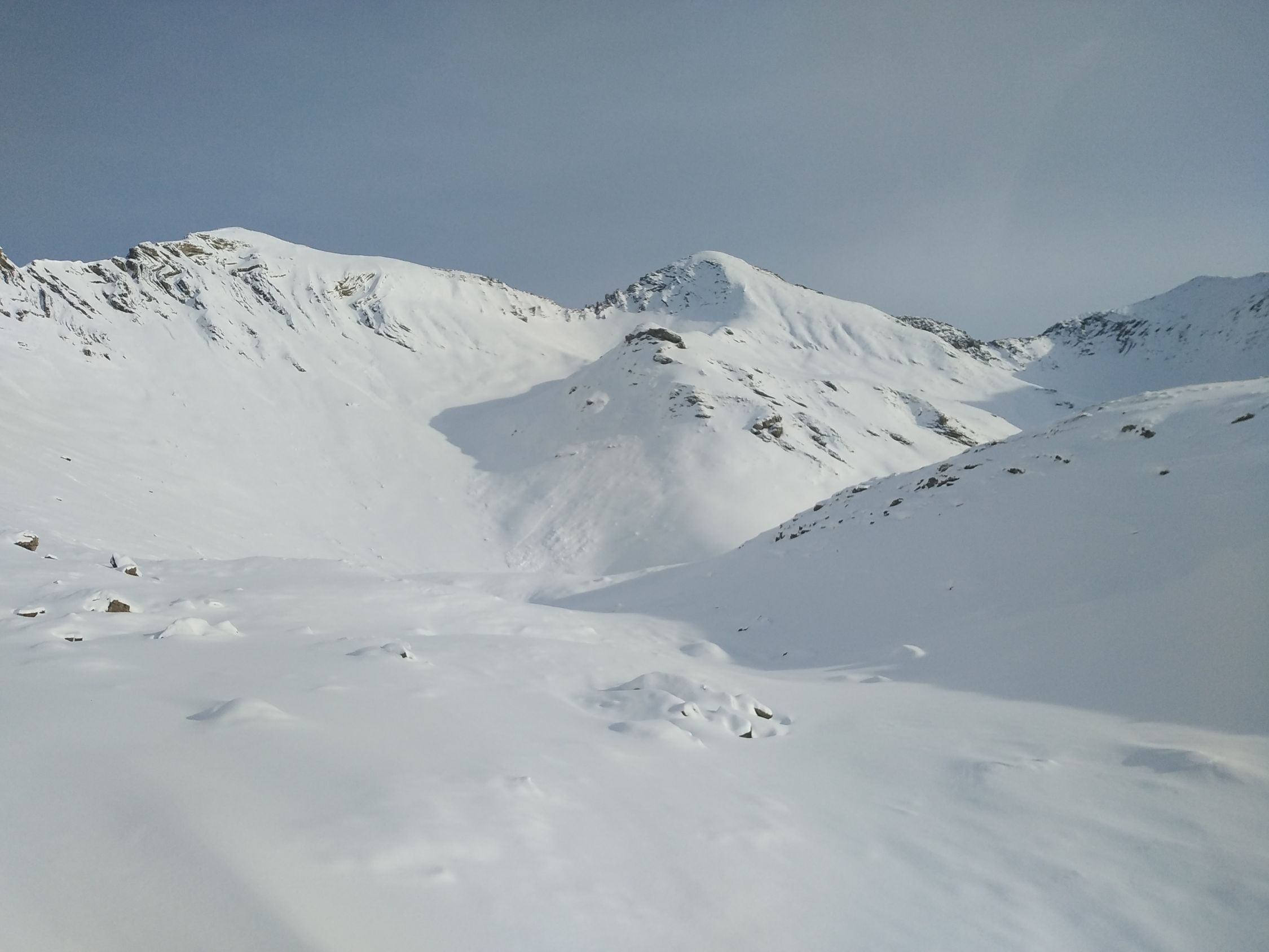 Ab da durch Gelände ins Obertal und von der Schattigen Schibe Lücke her auf den vereisten Gipfelgrat zuletzt zu Fuss die letzten 50 Hm.