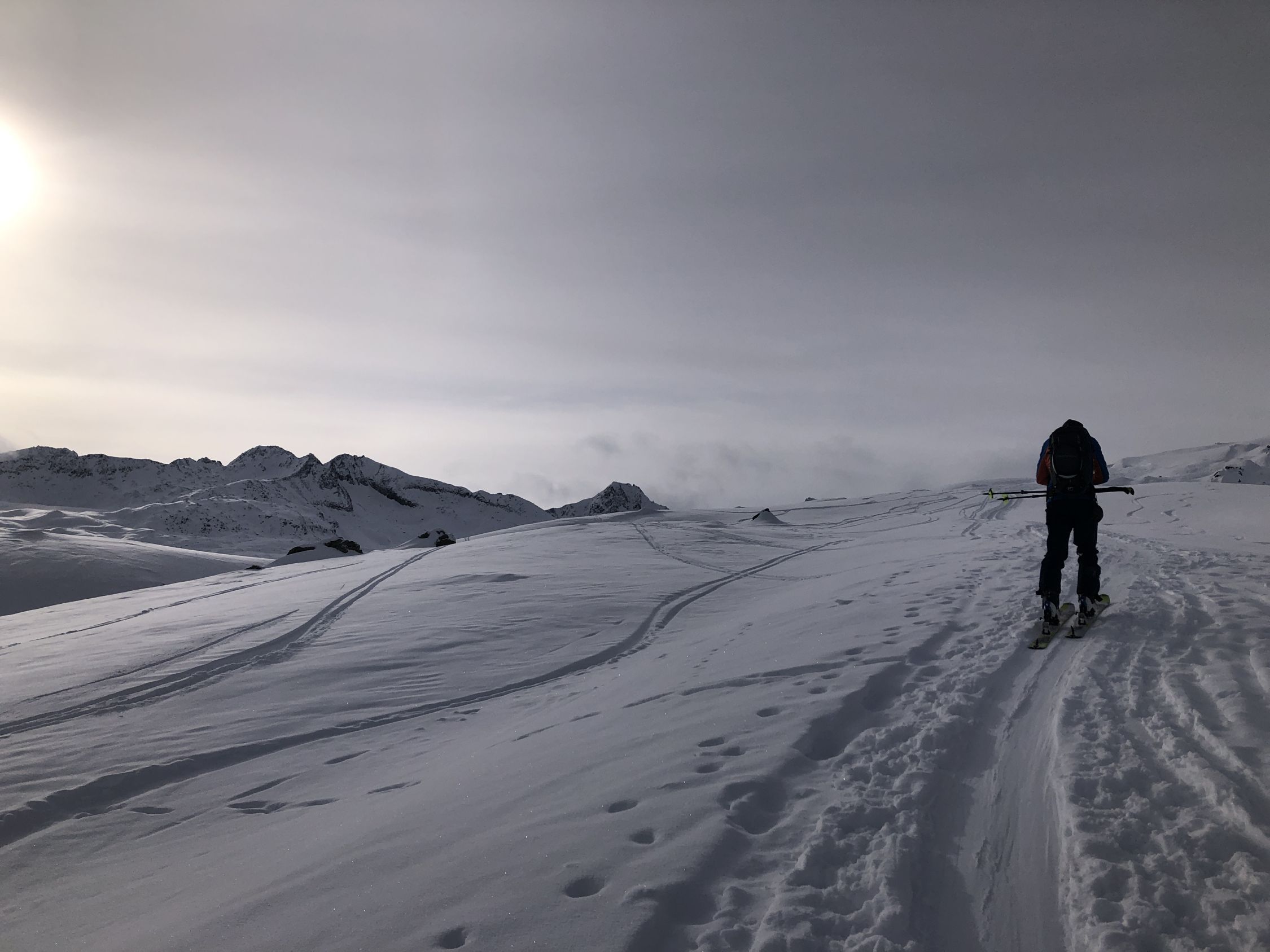 Ski konnten kurz nach dem DfB Depot angeschnallt werden. Danach gute griffige Spur. Recht guter Schnee, nur im unteren Drittel etwas schwer. Leider zerfahren - bei den aktuellen Verhältnissen ist das aber Jammern auf hohem Niveau). Kein Steinkontakt. Wenig- kein Wind. Verhältnisse viel besser als erwartet.