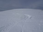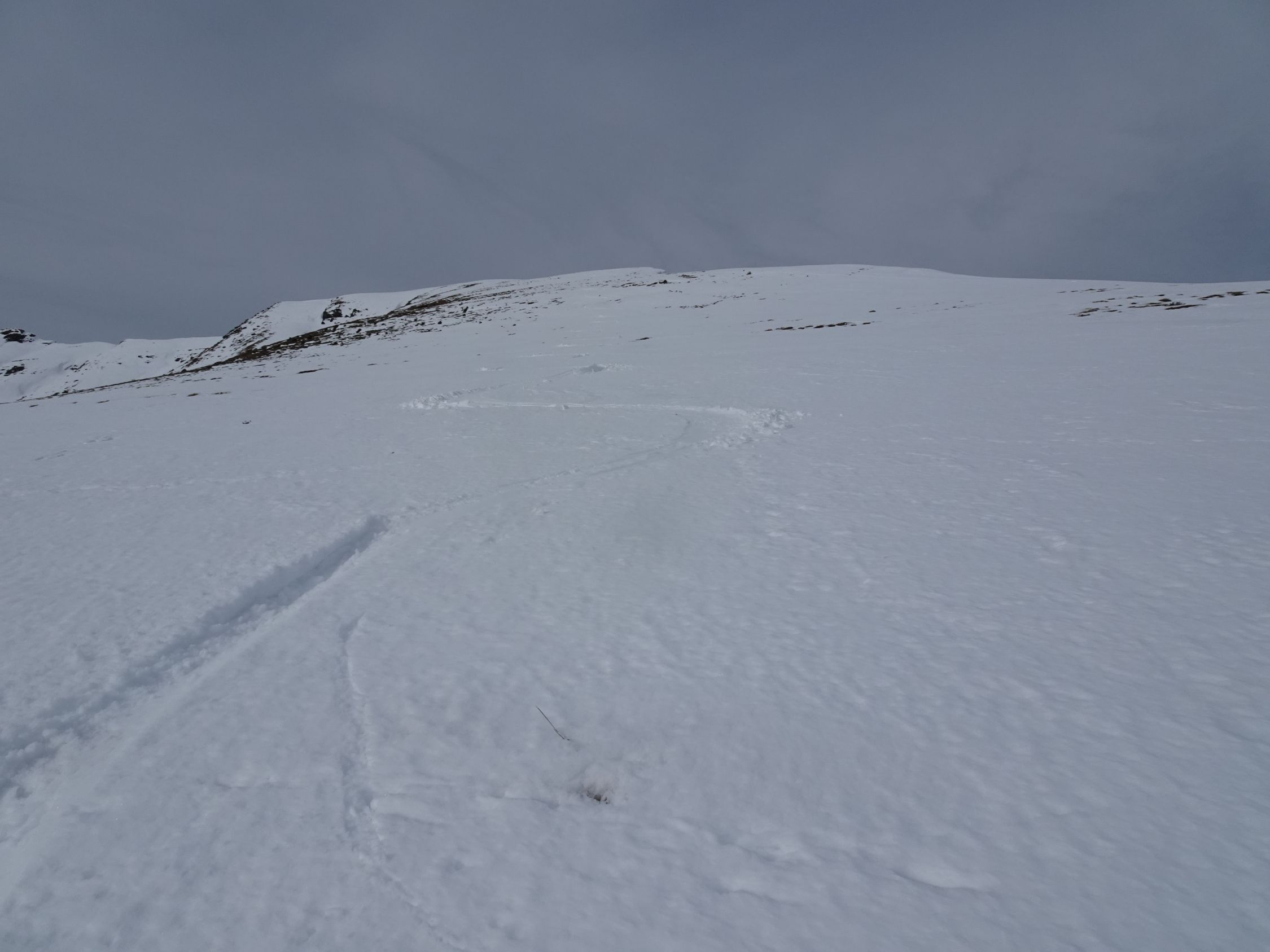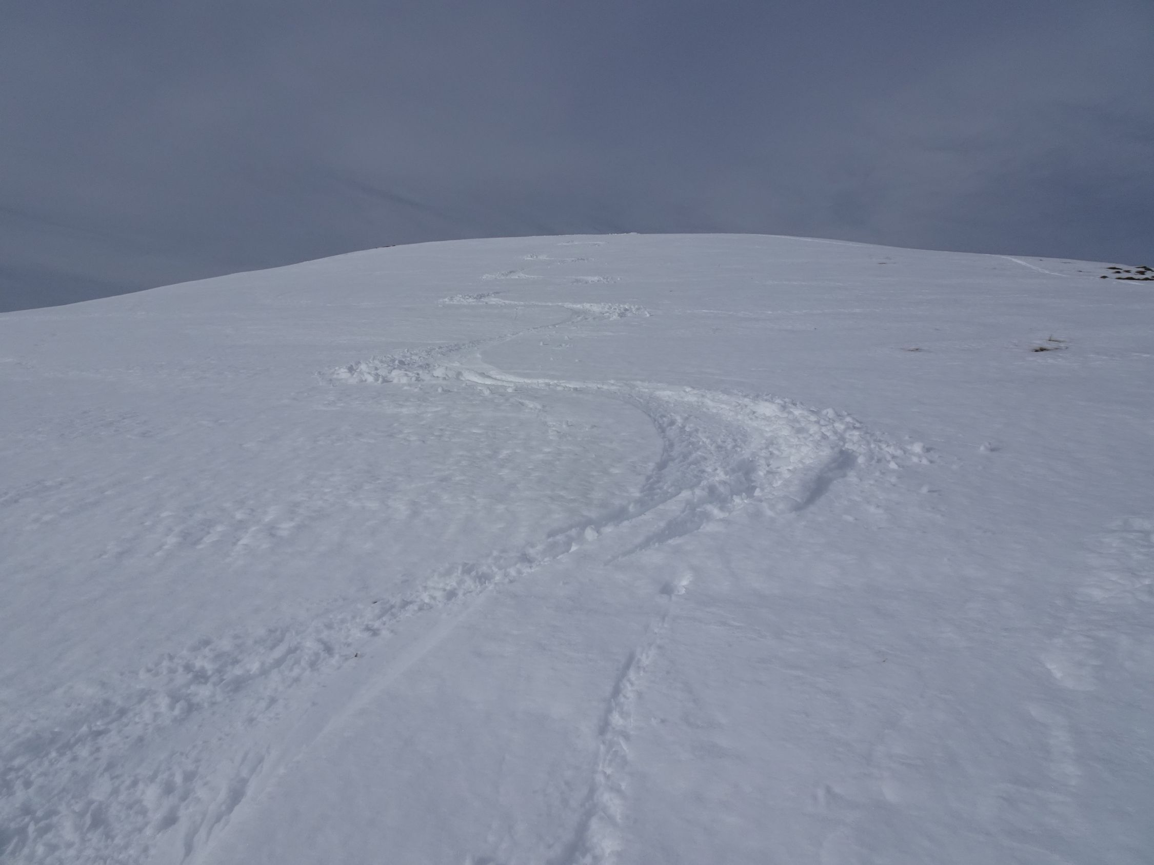 Der Schnee war heute bis auf den Gipfel nass und in der Abfahrt konnte ich knapp bis 1700m Abfahren, danach Ski tragen bis 1450m und den Schluss bis 1300m bis zum Auto nochmals Fahren.