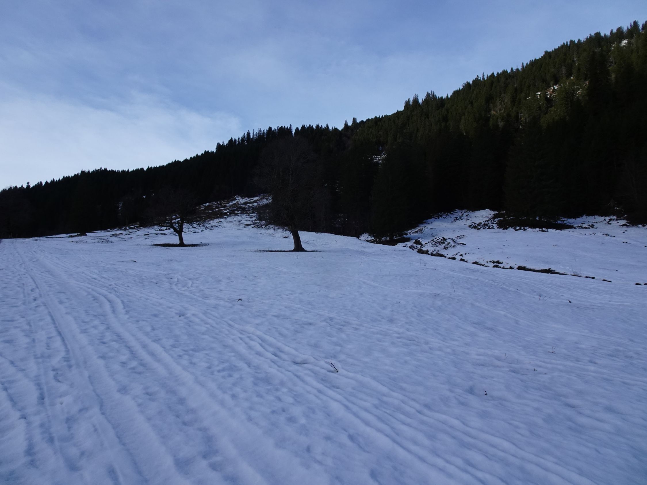 Ich bin mit Ski bei Gschwentenmad 1302m gestartet und nach 150Hm war auch schon Skitragen angesagt und zwar bis 1600m.