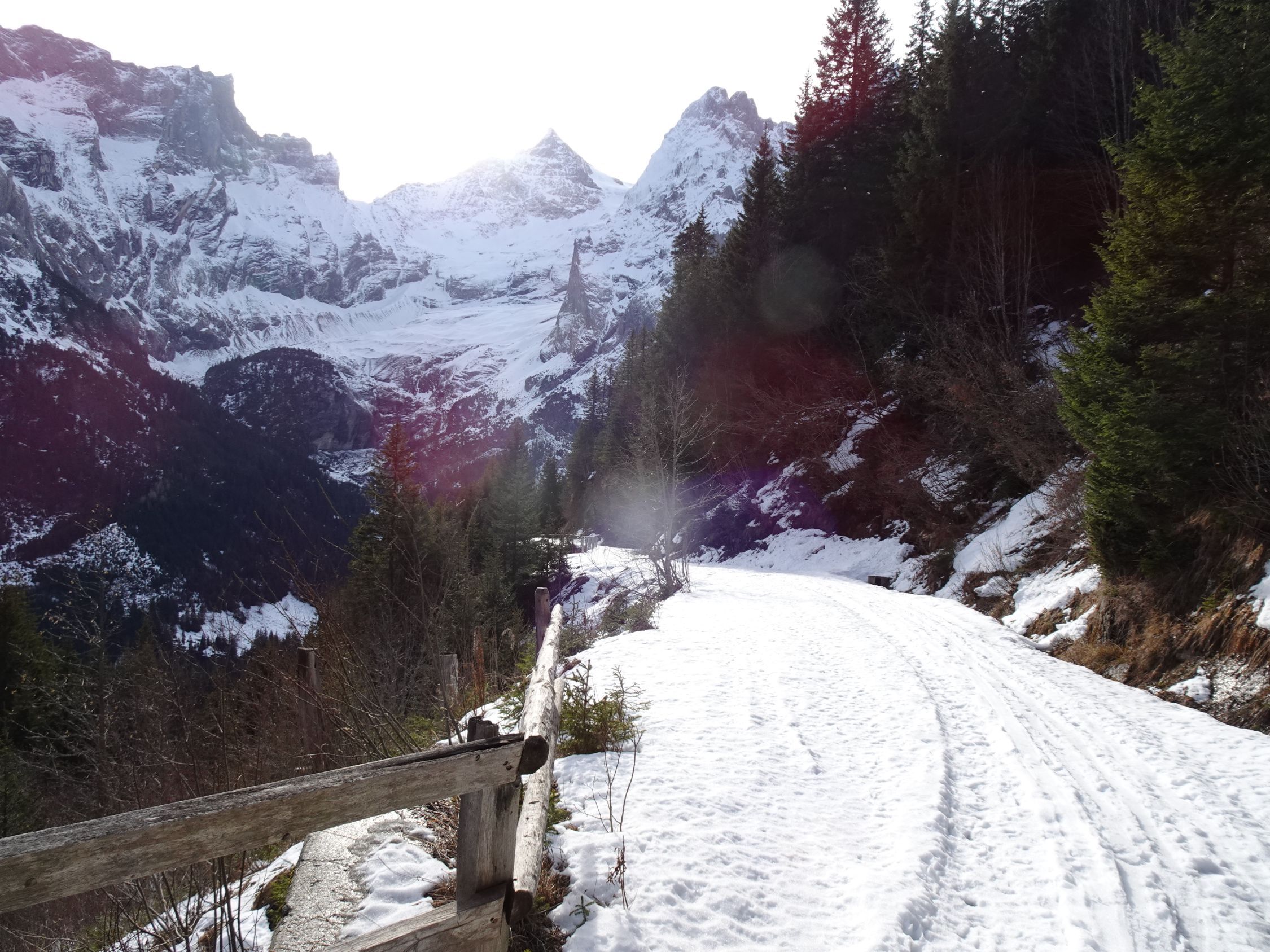 Danach auf Fahrstrasse nur im aufstieg wieder mit Fellen möglich.
