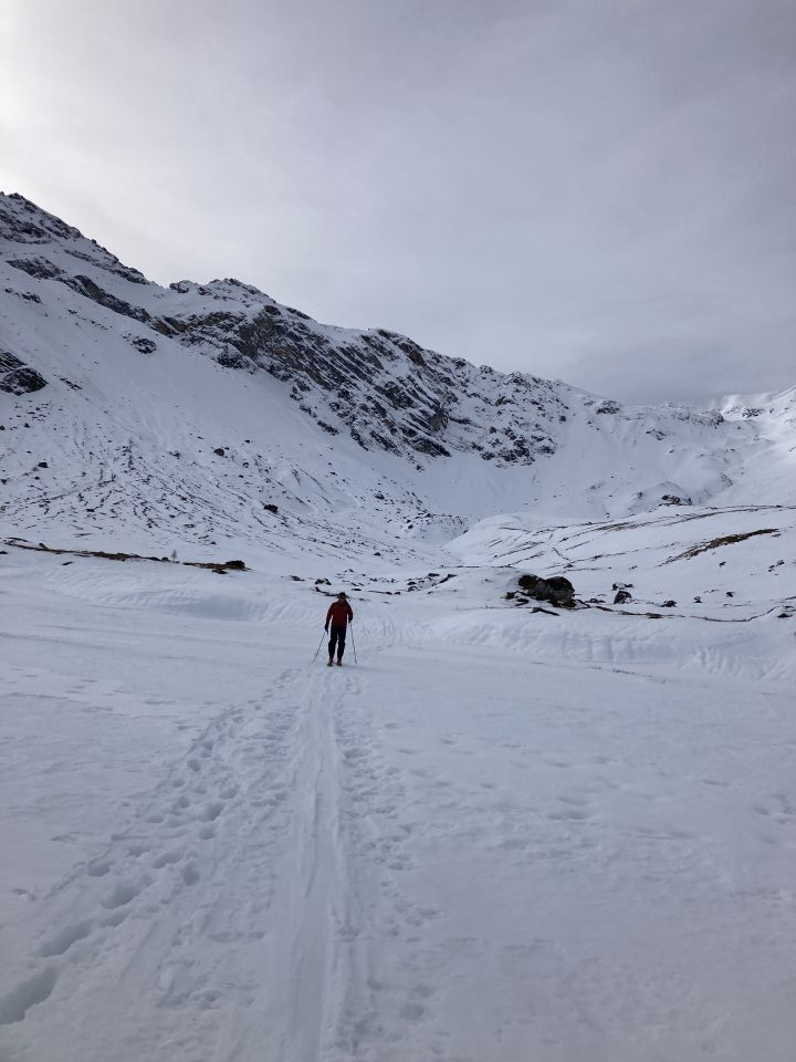 Das Ziel war für ein Mal heute nicht der Gipfel, sondern die windgeschützten NW-Hänge unterhalb des Frühstücksplatzes. Die Wettervorhersage machte nicht gerade Laune früh aufzustehen und doch sollte sich die alte Weissheit, dass die Conditions auf dem Sofa immer schlechter sind, als richtig erweisen.