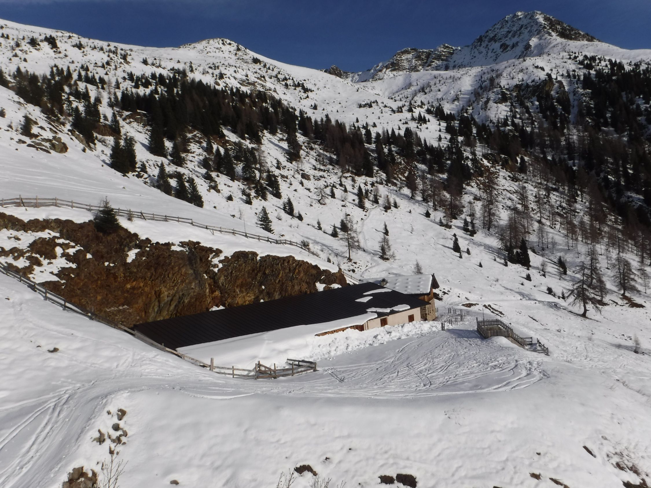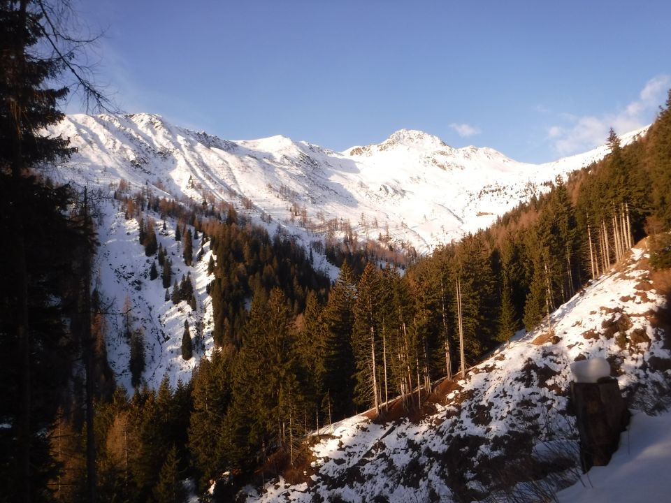 Tourenbeginn um 08:00 Uhr bei 0°C unter klarem Himmel. Den Alpweg konnte man ab Tal bereits mit Schneeschuhen laufen. Lediglich die beiden Bachüberquerungen waren schneefrei. Ab der Stierberg-Alm gab es eine Skispur zum Seespitz. In Richtung Samerberg zogen an Vortagen 3 Skitüerler ihre Spur hinauf und durch die Ostflanke hinab.