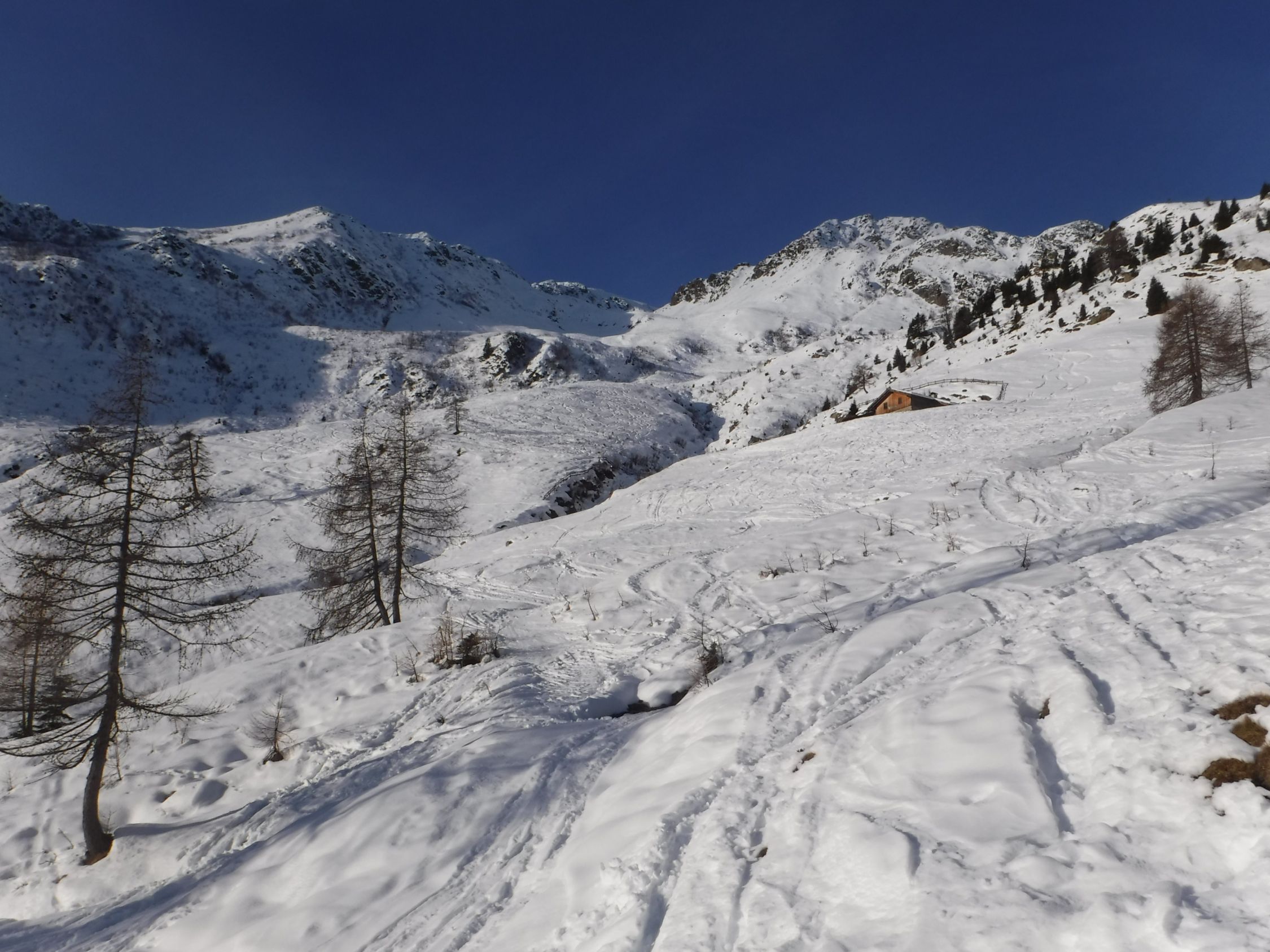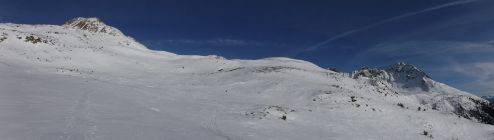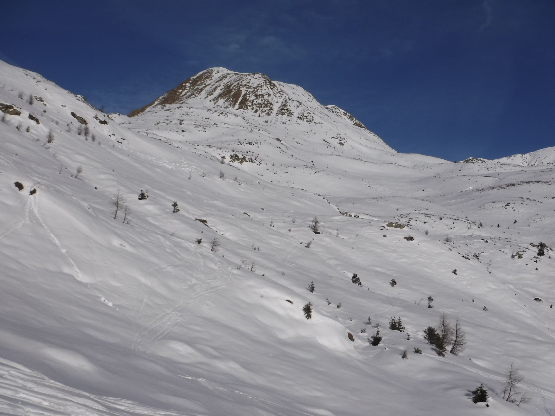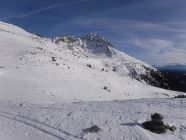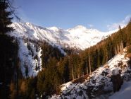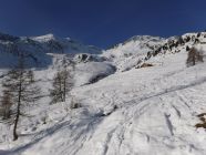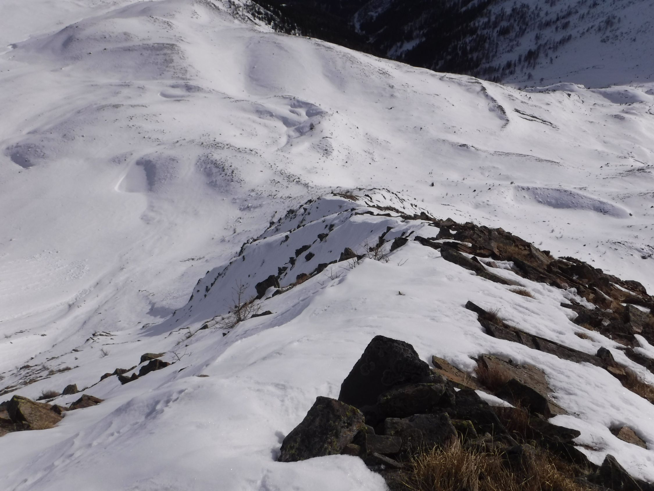 Im Aufstieg oberhalb der Stierbergalm kam mir ein Skitourengänger mit Hund entgegengefahren. Er war beizeiten auf dem Seespitz.