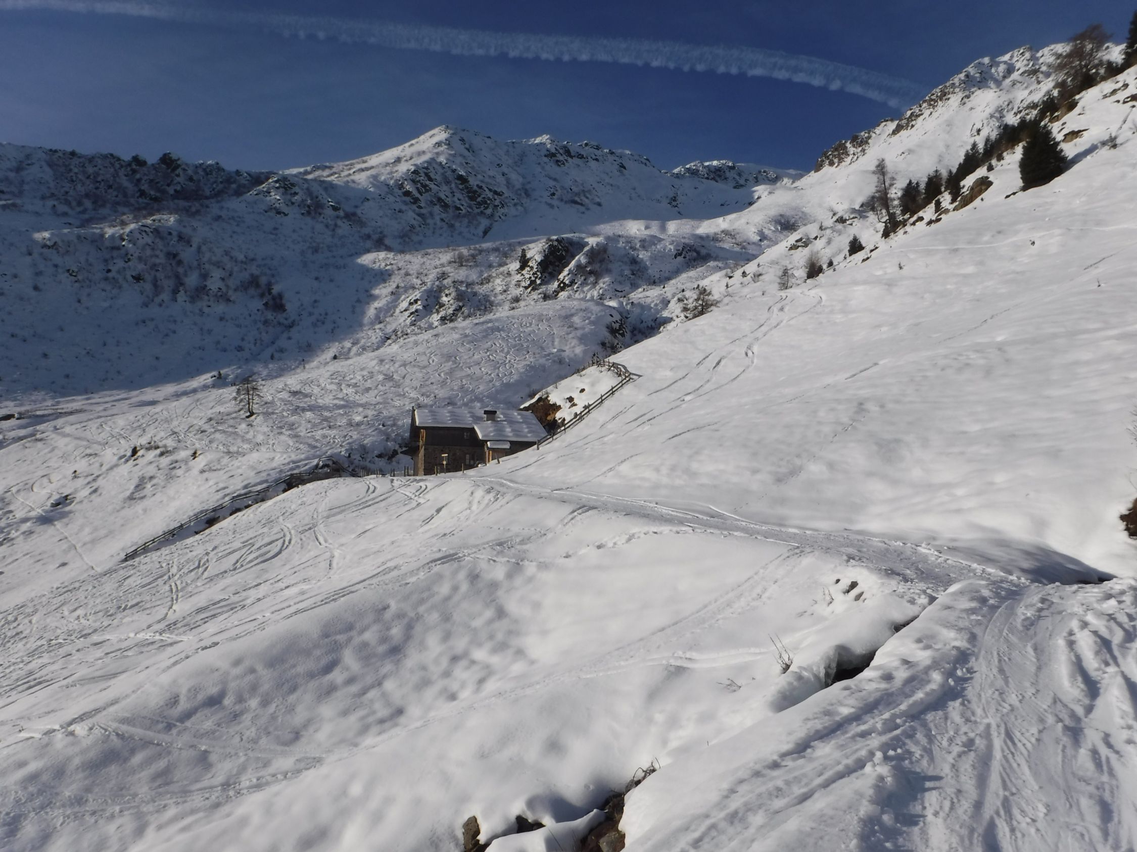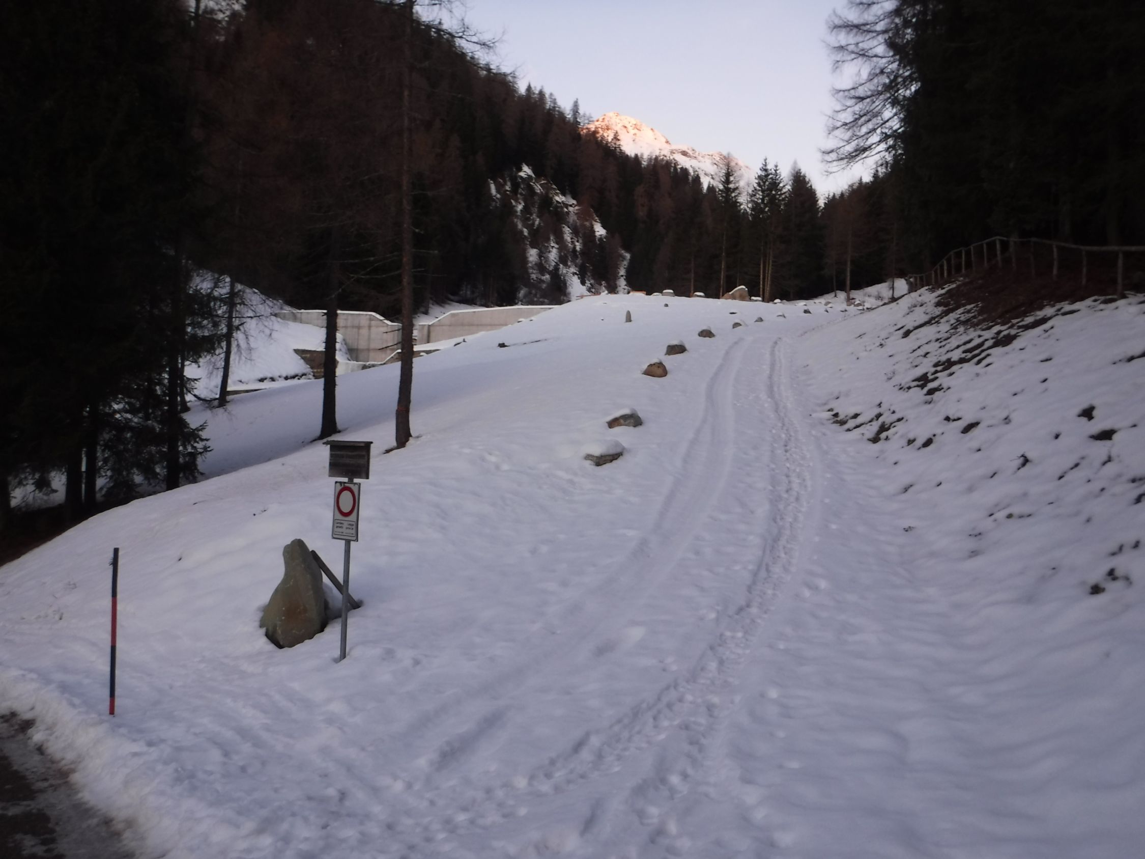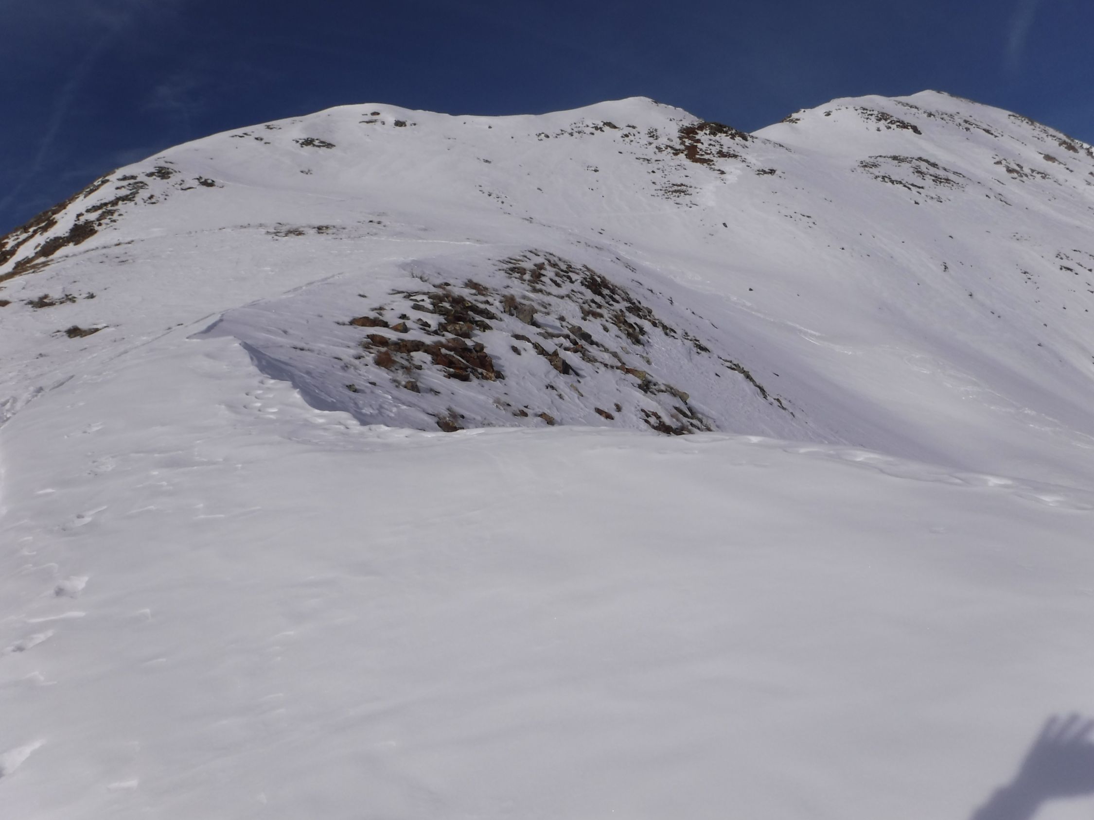 Im Aufstieg oberhalb der Stierbergalm kam mir ein Skitourengänger mit Hund entgegengefahren. Er war beizeiten auf dem Seespitz.