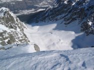 Mit dem angekündigten Temperaturrückgang werden die Verhältnisse noch länger so bleiben. Im steilen Gipfelbereich sind noch nicht alle Hänge entladen. Da der steile Gipfelhang ein Osthang ist, muss je nach Temperatur in den späteren Vormittagsstunden mit Nassschneerutschen gerechnet werden. Trotz der grossteils nordseitigen Abfahrt sollte wegen des ostseitigen Gipfelhanges frühzeitig gestartet werden