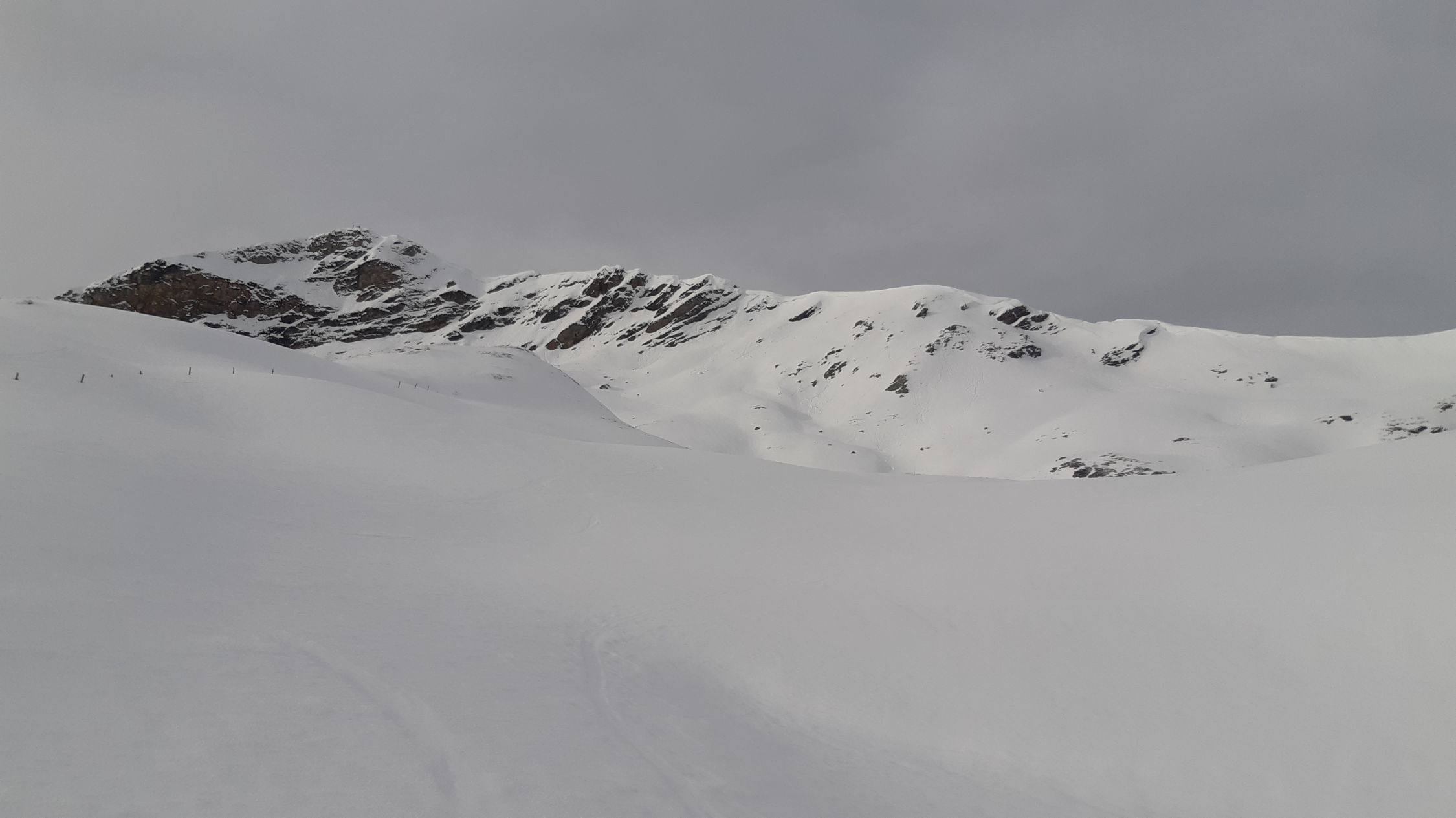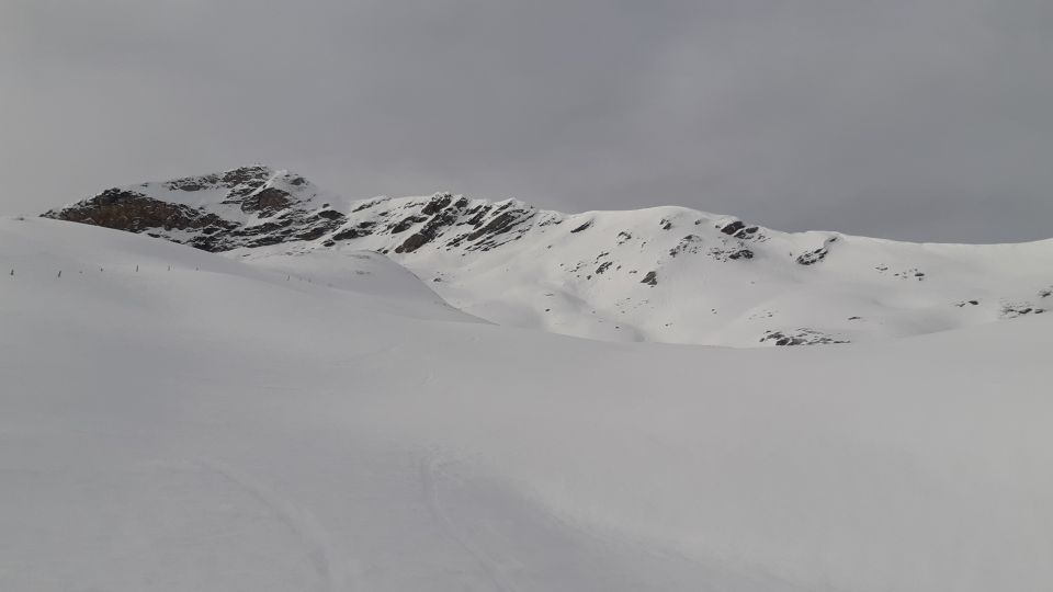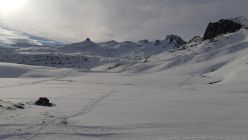 Erstaunlich gute Verhältnisse. 2 bis 3 cm frischer Pulver auf tragender Unterlage. (Süd-ausgerichtete Hänge aber Bruchharsch)