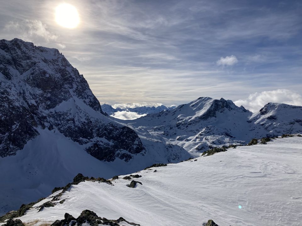 Im Aufstieg harter Spur auf zum Teil sehr dünner Schneelage. Auf der Abfahrt in den Südexpositionen dann Sulz mit diversen Steinkontakten.