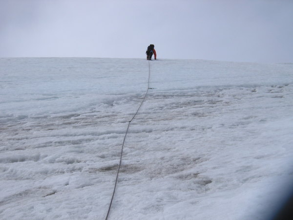 Abstieg wieder über die Eisnase, 2mal 50m im Eis abgeseilt, "Eisbirne" gebastelt und langer Gegenanstieg über das Limmerenband zum Limmerenpass und zur Bifertenhütte.