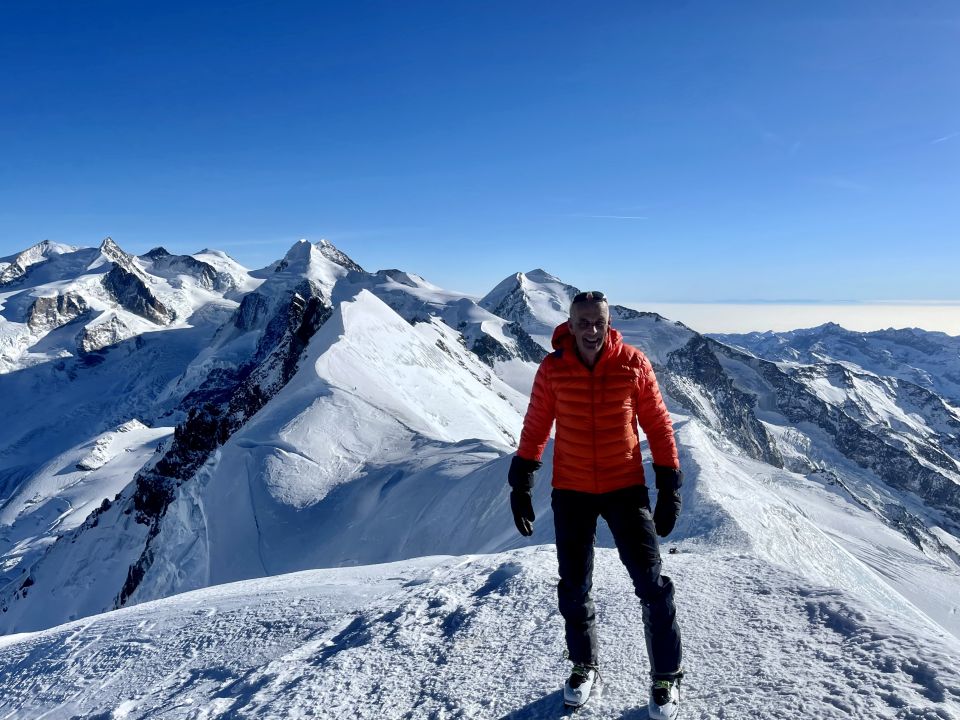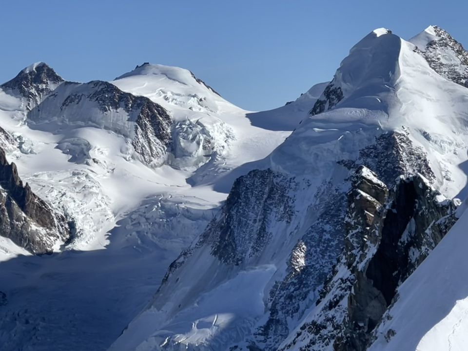 Das Breithorn ist immer ein Hammer Aussichtsgipfel, vom Matterhorn/Cervinio gegenüber über den Mont Blanc bis zum Mont Viso auf der einen Seite, mit dem Monte Rosa Massiv - man sieht geradewegs auf die Capanna Margherita - auf der anderen fallen Dir die Augen raus.
