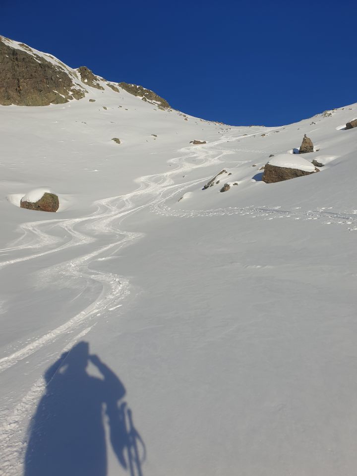 Ab Zollwachthütte schöner Pulver.Im unteren Teil bruchharsch und eisiger Ziehweg.Schneeauflage auf Weg ins valzifental gerade noch so ausreichend!haben Gipfelhang gespurt.ausser uns heute niemand oben.verhaeltnisse entsprechen dem Eintrag vom Montag!