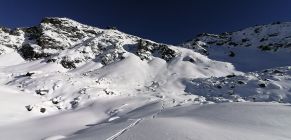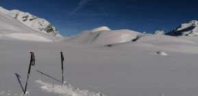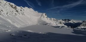 Leider war der Pass bis 11.30 Geschlossen. Start ab PP Tschuggen auf oder neben der Strasse. 1 cm Pulver auf Hartschnee oder Strasse, je höher desto mehr Pulverschnee. Am Gipfelgrat guter Trittschnee. In der Abfahrt ist vorsicht geboten ..verdeckte Steine..und auf 2280 habe ich ein kleines Schneebrett ausgelöst. Unterhalb von 2250 kaum noch Schnee