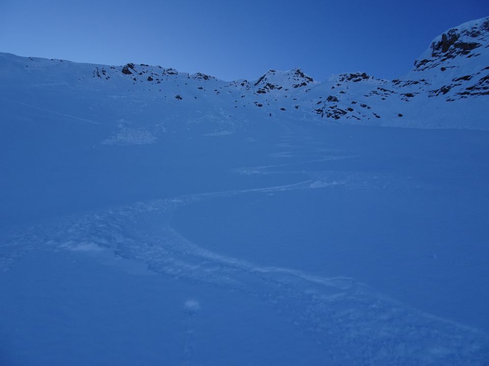 Abfahrt sehr durchzogen mit leichtem Bruchharschdeckel und unten Hart aber gut zum Fahren