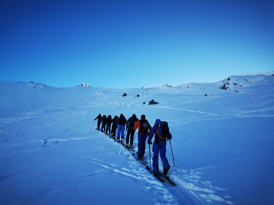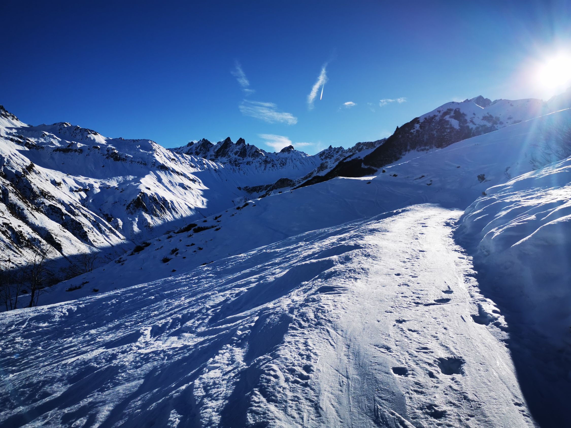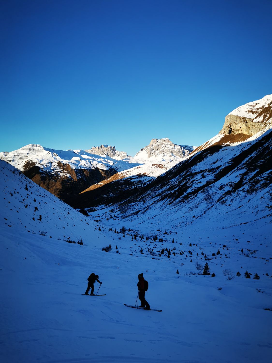 Schnee ab Parkplatz (Dörfli). Unten sehr hart bis eisig und wenig Schnee, daher bis Alp "Säss" auf der Strasse entlang hoch. Pulverschnee ab ca. Höhe vom "Haupt". Gute Spur bis zum grossem Steinmann beim Gipfelsattel. Gipfel gut erreichbar durch Rinne ohne Steigeisen. Südwestseitige Travesierung zur alternativen Abfahrtsroute Richtung "Bi den Nünzgen" ohne Gefahr und gut machbar. Abfahrt mit schönen Hängen gut schneebedeckt - oben Pulver, Mitte Bruchharsch und unten Hartschnee.
