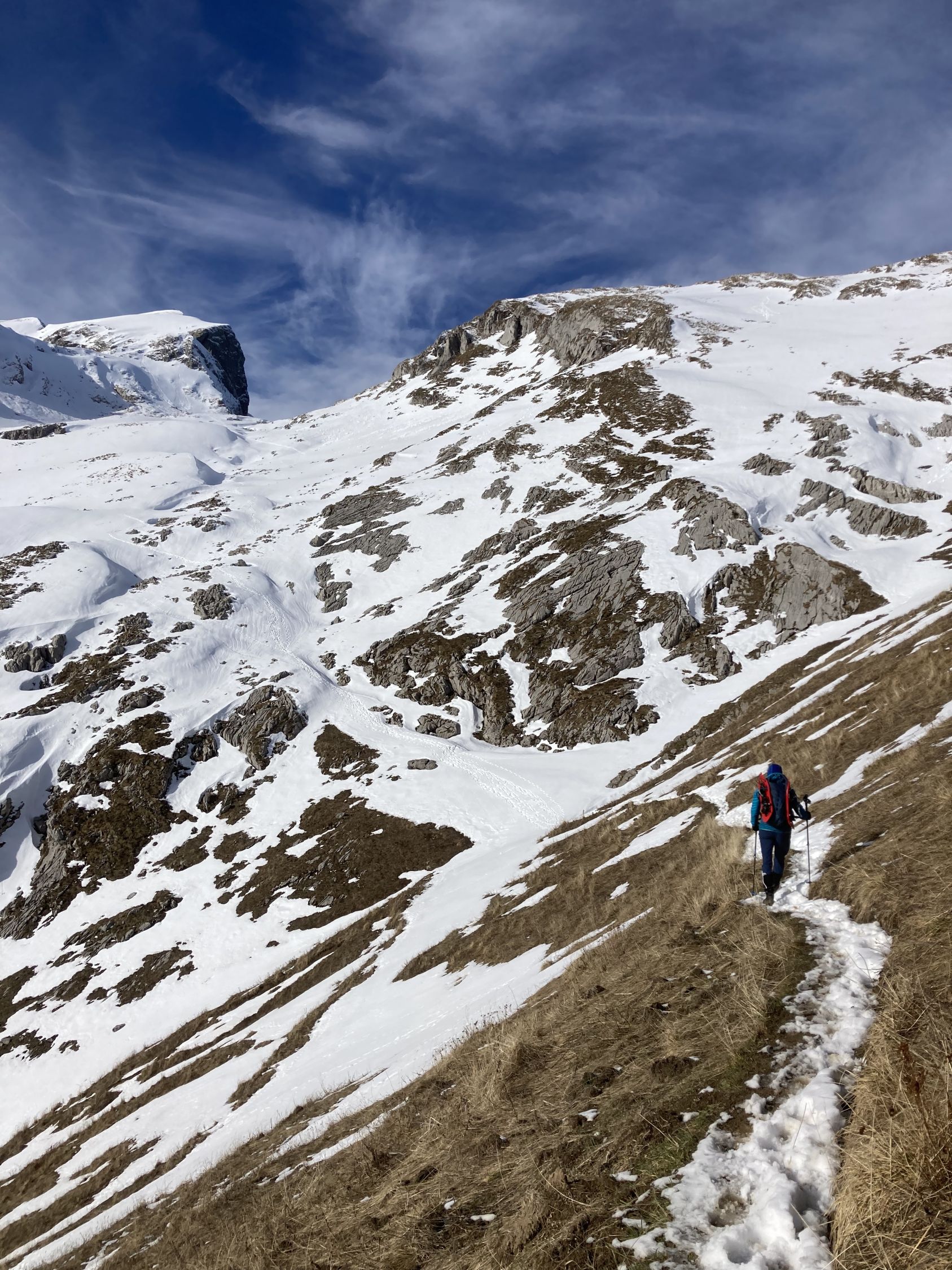 Schnee gibt es erst ab 2000m, dann ist die Schneedecke so gut tragend, dass wir die Schneeschuhe nicht brauchten.