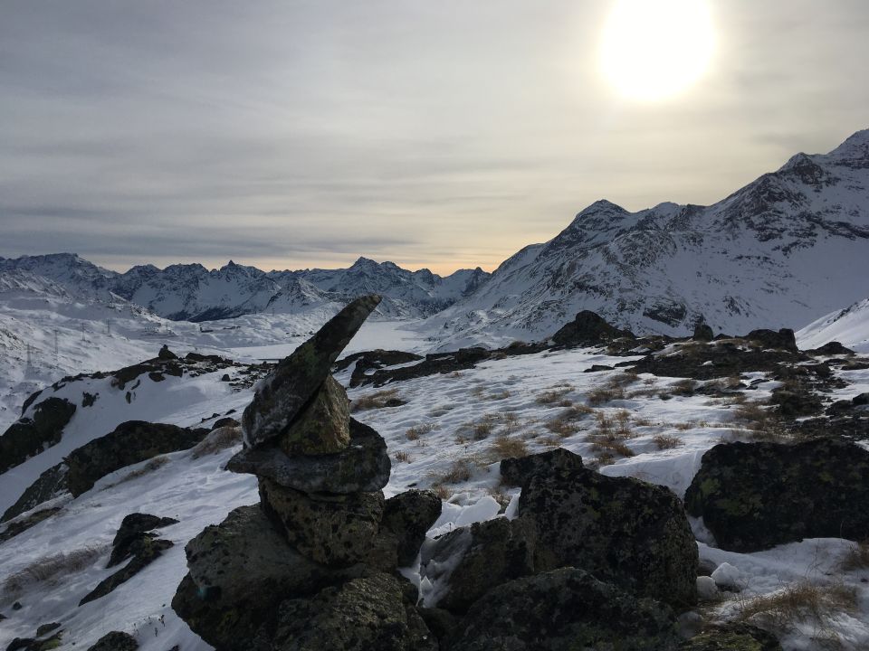 Leider hat der Wind in höheren Lagen im Berninagebiet ganze Arbeit geleistet, Sassal Mason z.B. total abgeblasen, schlechte Verhältnisse für Skitouren.