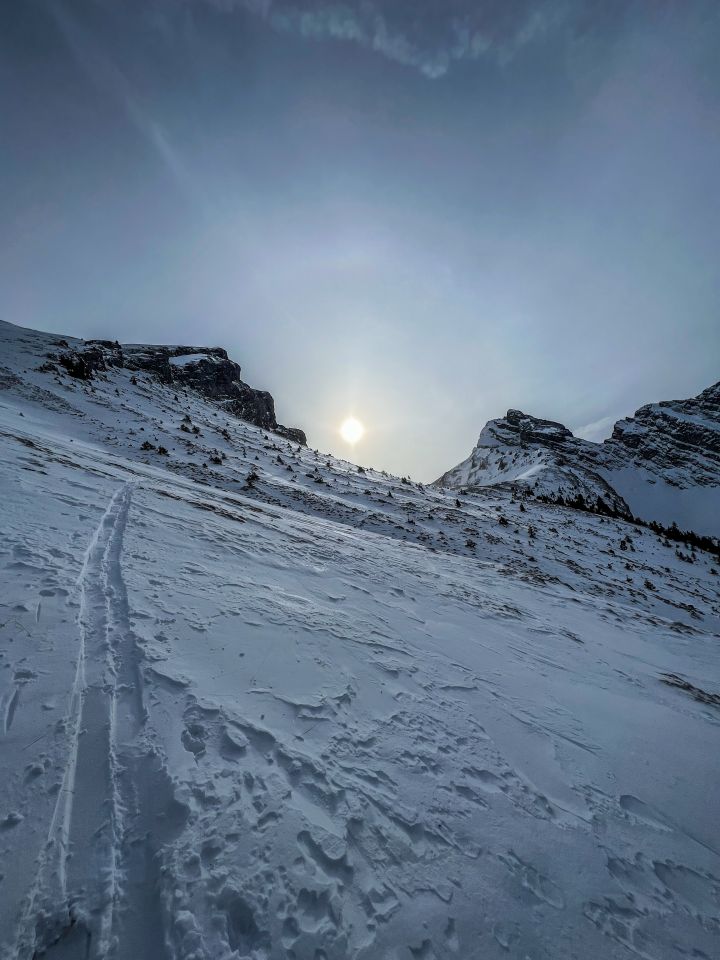 es hat so gewirkt als wäre die tour nicht machbar weil alles abgeblasen ist und das gras/steine hervorschauen. überraschend konnten wir aber viele gute schwünge in der abfahrt machen, es braucht aber definitiv mehr schnee