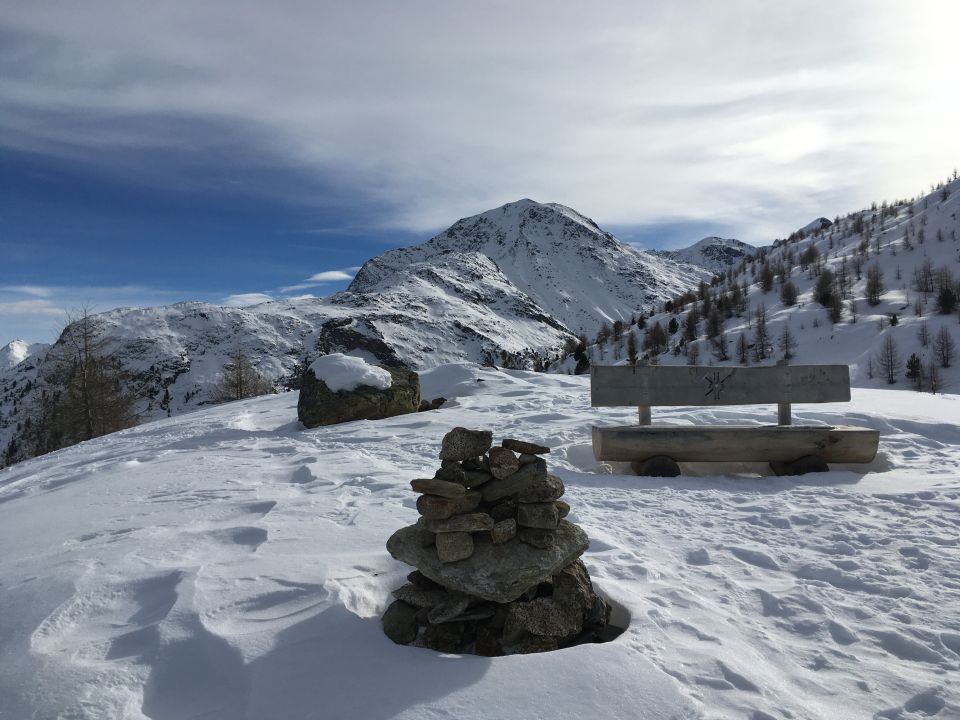 Sehr schöne Wintertour, bei diesen Verhältnissen auch gut mit Bergschuhe machbar. Es ist auch eine Skitourenroute bis unterhalb Piz da Staz in der Karte aufgeführt, oberhalb der Waldgrenze sehr schönes attraktives Gelände, im Wald viel zu ruppig, nicht empfehlenswert.