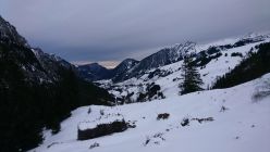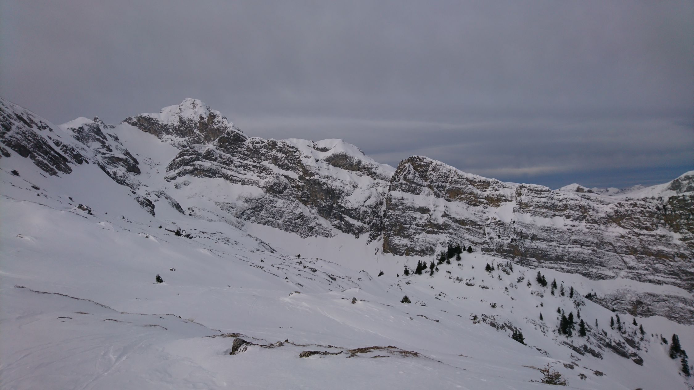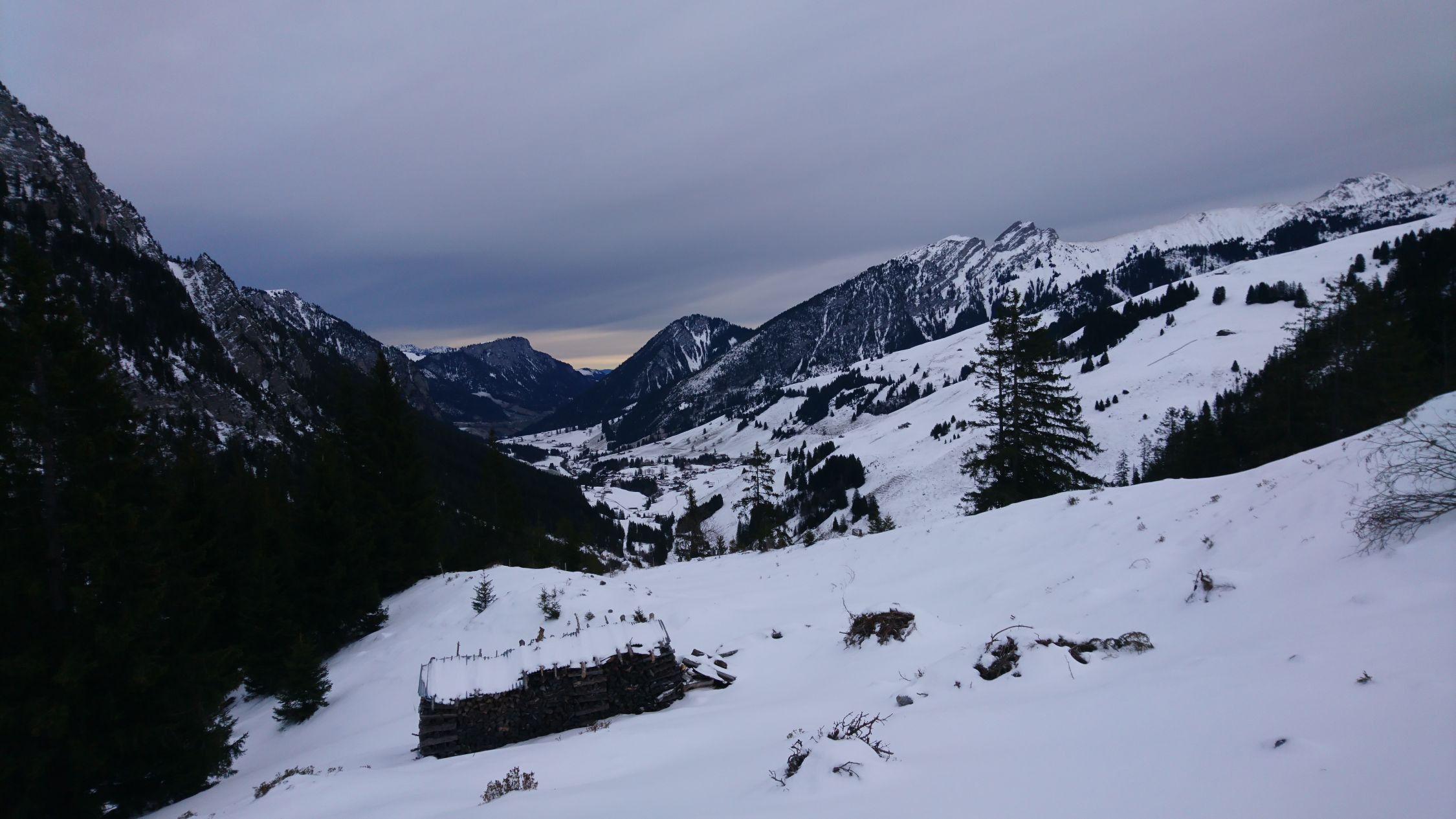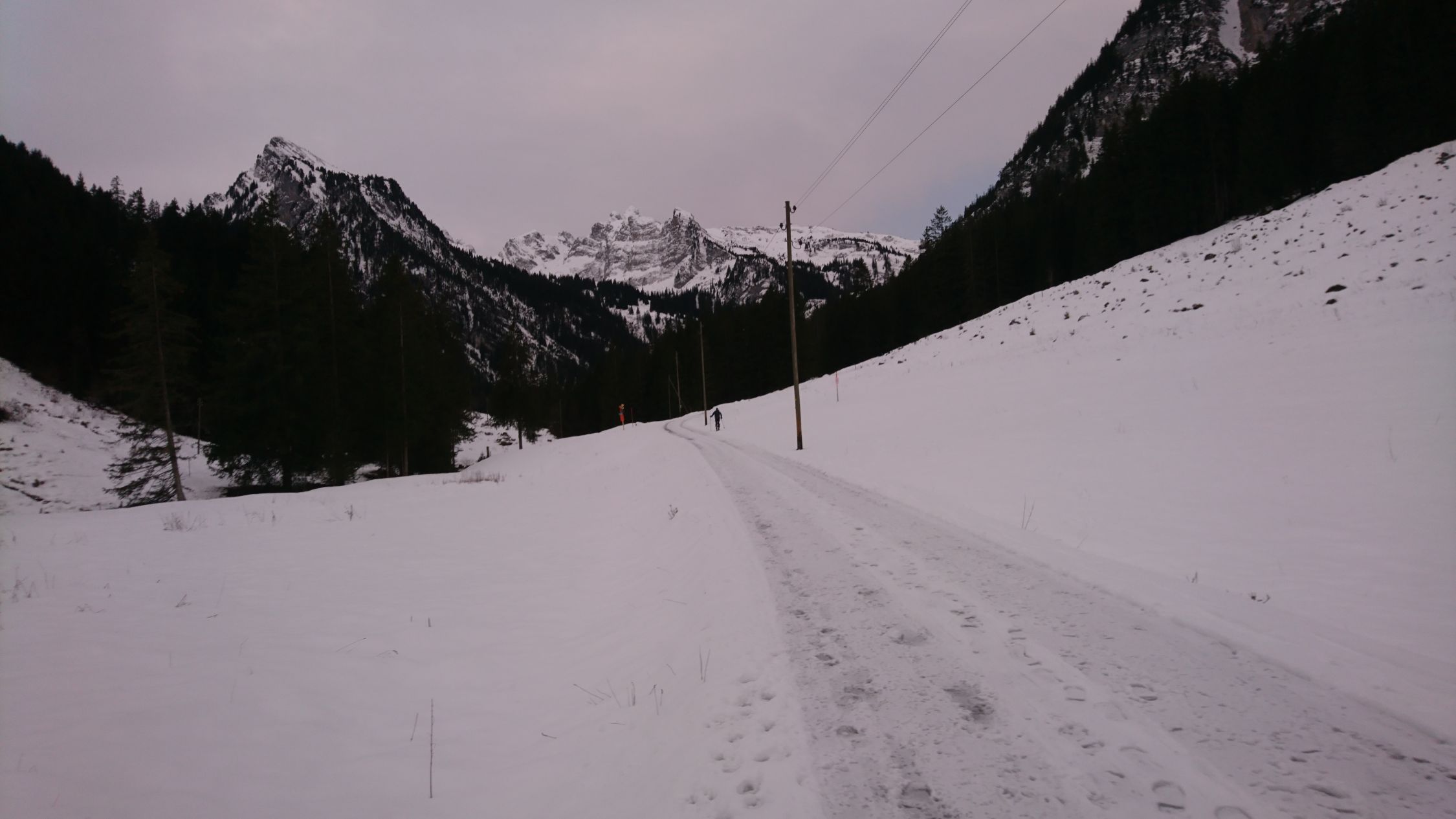 Heute war der Aufstieg besser als die Abfahrt. Auf der Strasse bis Würzi hat es spurrillen von einem Auto, jedoch knapp genügend Schnee. Im Wildgrimmi sind die fiesen Steine nur knapp bedeckt. Bis ca. 1800m gab es einen nichttragenden Deckel und darüber Presspulver.