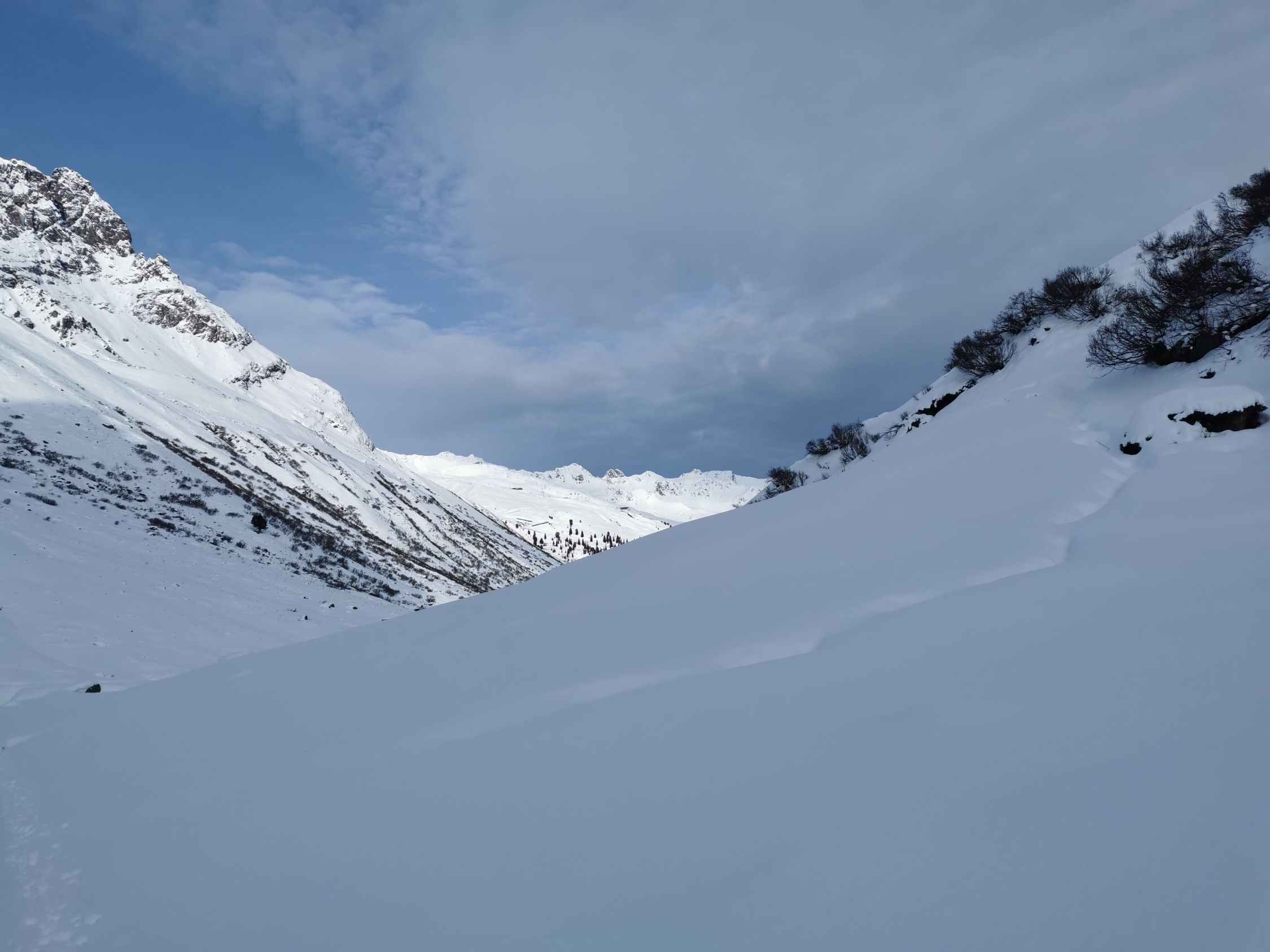 im Valazifenz ab Gargellen liegt bis zur oberen Valazifenzalpe nur der Schnee dieser Woche. Darüber wirds mehr. Aber immer noch irre wenig.