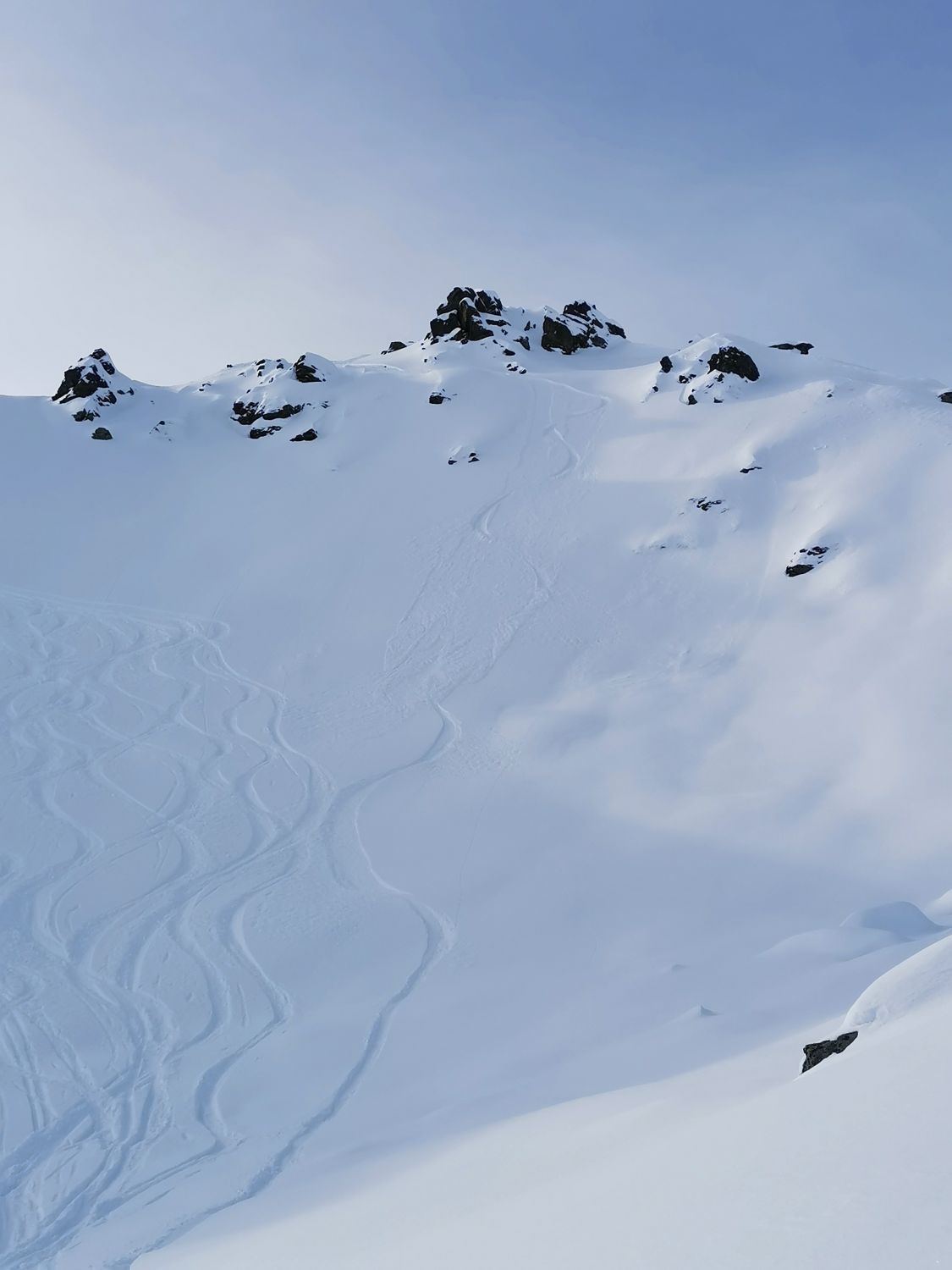 Abfahrt schlappiner Spitze sah sehr gut aus. Rotebühel aus der Entfernung eher steinig. Aufstieg palmtaljoch geht, ebenso Richtung schneeberg