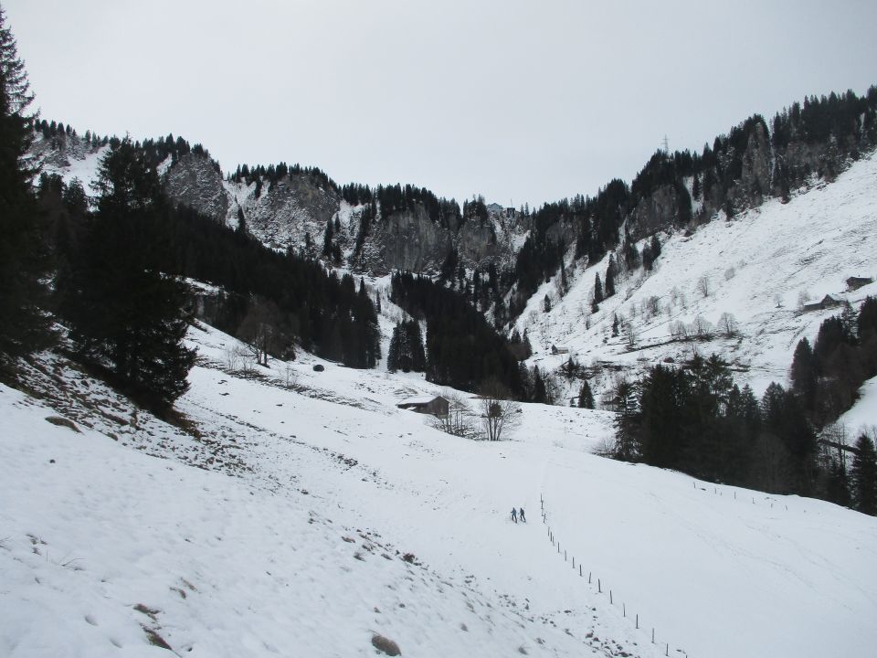 Insgesamt wenig Schnee, was mit den Schneeschuhen nicht weiter stört. Wir profitierten weiterhin von einer wunderbar verlassenen Bergwelt.