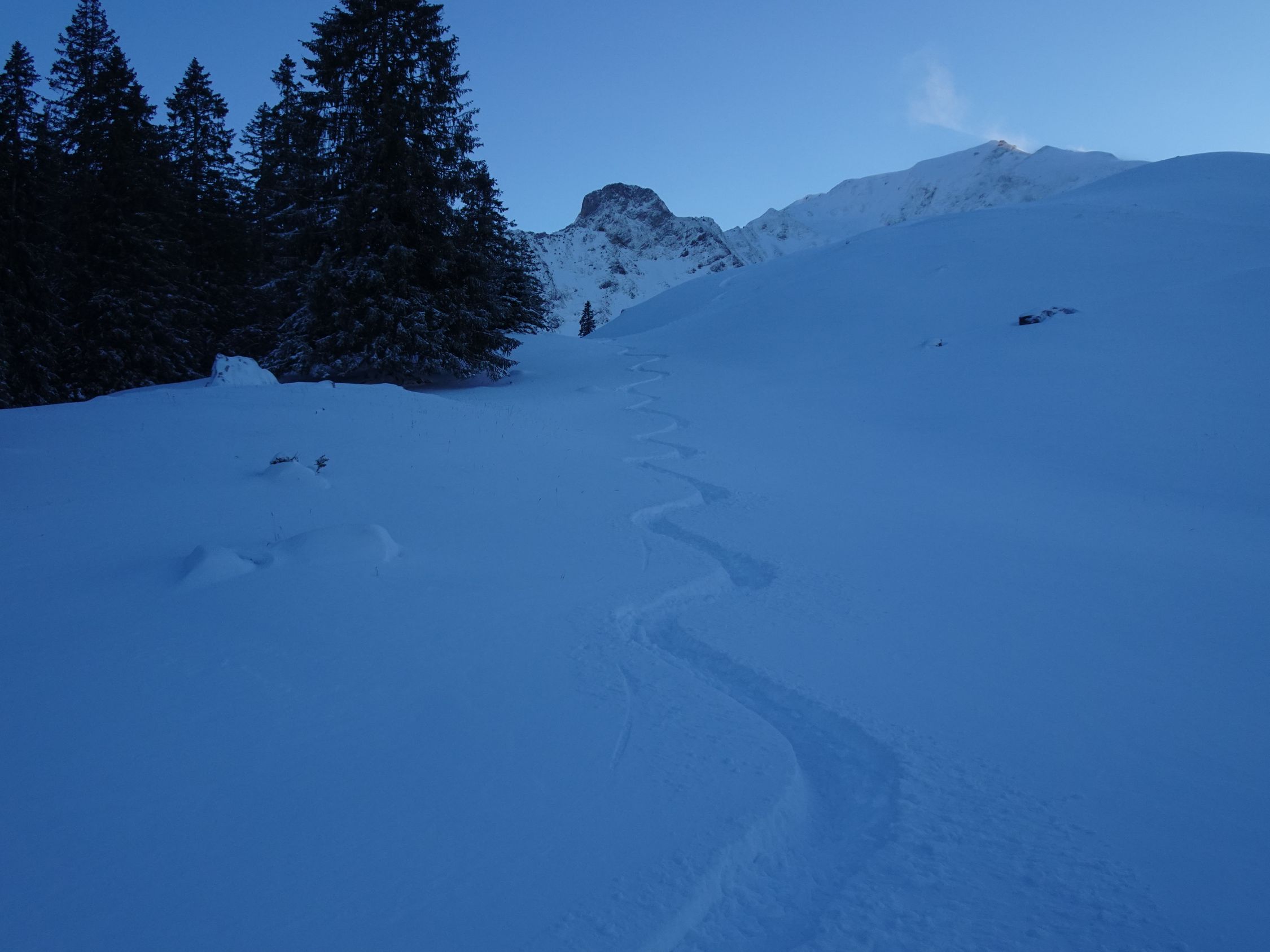 Endlich hat es auch im Gantrischgebiet wieder Schnee und zwar 20-30cm Herrlichen Pulverschnee in den Rinnen und Mulden, dafür in den Gratlagen weggeblasen