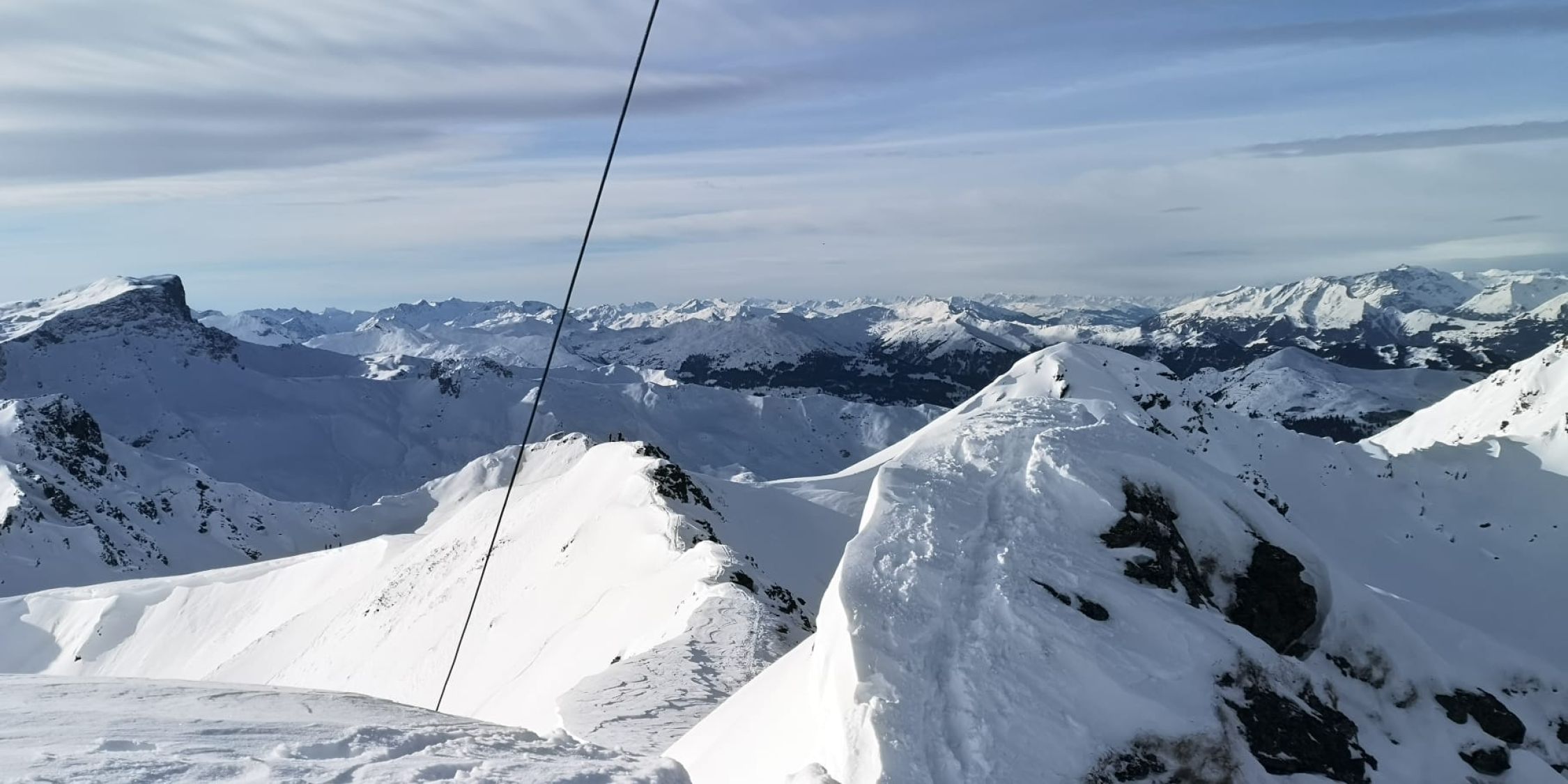 Grundsätzlich ab ca. 2000 Metern guter Pulverschnee. Abfahrt durchaus genussvoll. Weg über Grat zum Kreuz bis auf wenige Stellen schneebedeckt und trittsicher. Aufpassen bei Wächten und Treibschneeansammlungen!