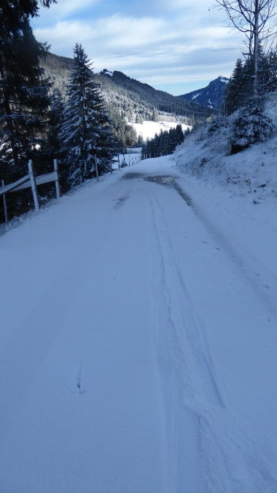 Start Säge um 10 bei freundlichem Wetter, Ski bis Vorsäß I getragen. Von dort auf unten dürftig bedeckter Mautstrasse hoch (min. Neuauflage auf vereistem Unterggrund). Nach oben zunehmende Auflage. Ab Rappengschwend ca. 10cm Pulver auf tragendem Untergrund, nur an wenigen Stellen verblasen. Bei Steilstufe zum Gipfel liegt zwar ordentlich, aber Kraut und Gebüsch schaut noch raus. Für Abfahrt noch nicht der Brüller. Bin übers Tennenmoos und obere Viehweid zur unt. Wilheminealp runter. Dort waren die Bedingungen recht gut und es gab einige lockere Schwünge. Allerdings wurde es ab 12fe recht difus und das ist Gift gerade für meine Augen. Der Rest Querung zurück zur Rappengschwend und auf M-Str. runter oben gut, Rest na ja, aber besser wie laufen.