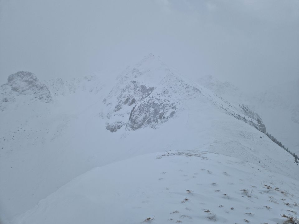 Kurz Tour heute morgen. Es war bewölkt und leichter Schneefall aber die Sicht war trotzdem gut genug. Auf dem Gipfel wehte ein starker Wind. Der Schnee ist sehr verblassen und zum Teil Schaut noch das Gras hervor, aber in den Rinnen und Mulden hat es guten Pulverschnee.