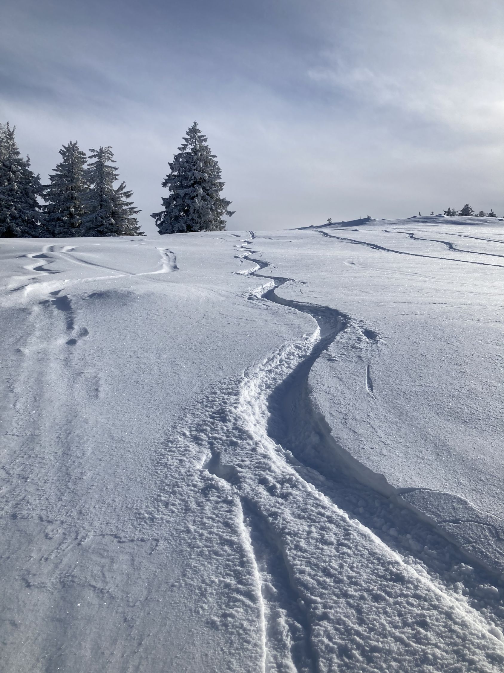 Von der Chüebodenegg übers Nüzimmer zurück nach Müselen. Schöner Powder, aber die Wiese ist zwischendurch spürbar. Einfahrt Nüzimmer weniger ruppig als erwartet. Schlusshang vor Cholwald ganz rechts (nördlich) gefahren. Insgessmt ok. Auf der ganzen Strecke kein Steinkontakt.