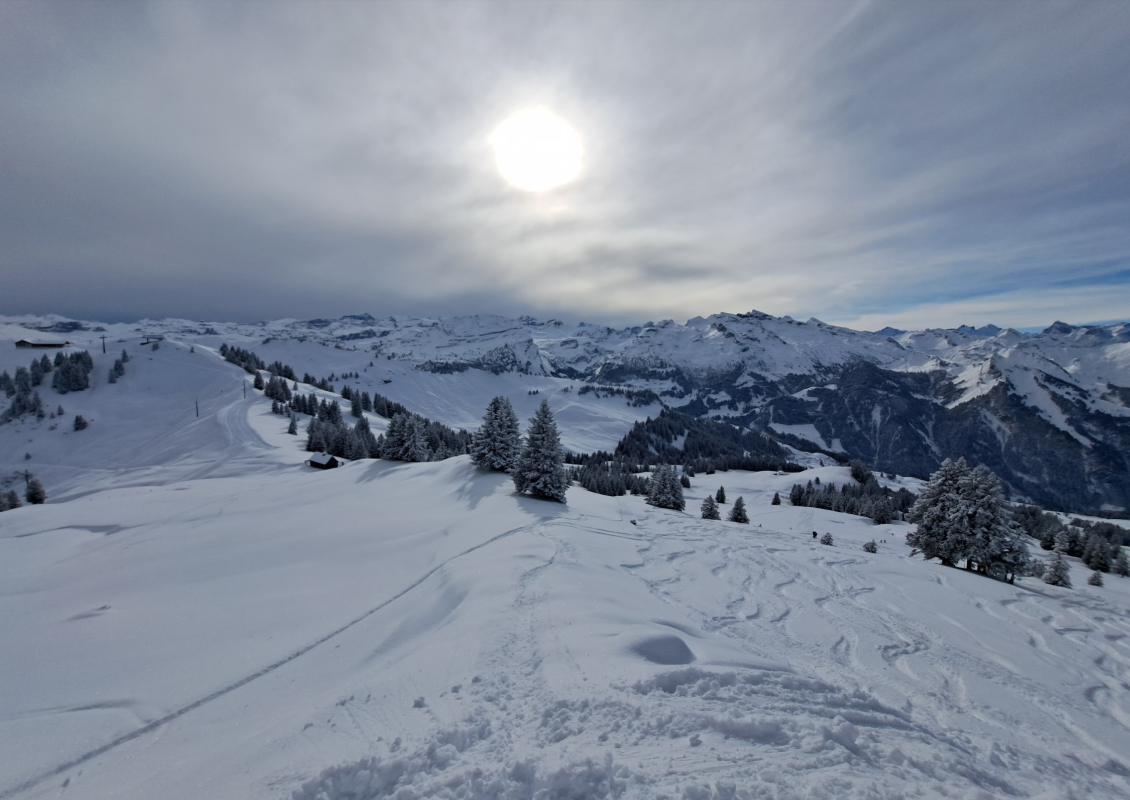 Es hat genügend, aber nicht zuviel Schnee. Im oberen Bereich gut, im unteren Bereich fährt man auf den Grund. Da es meist Wiese ist, ist es ohne Steinkontakt möglich (Glück gehört dazu).