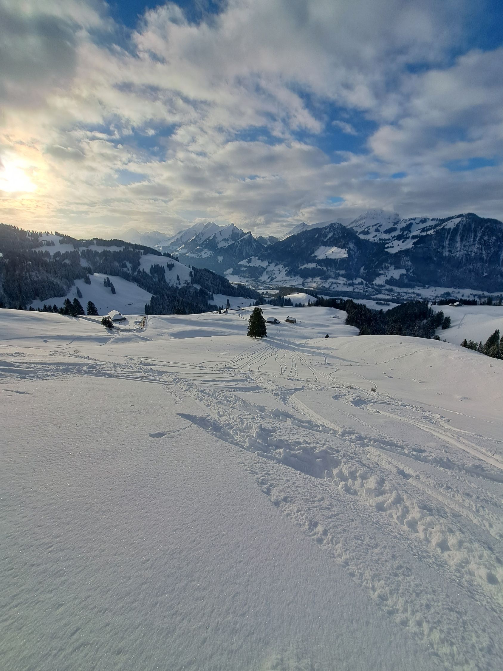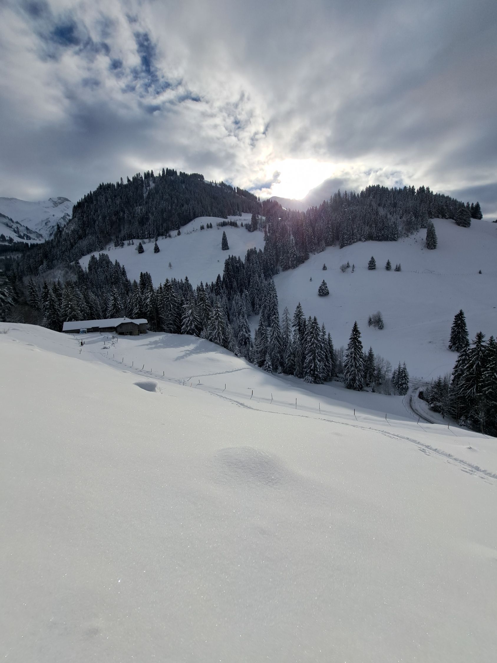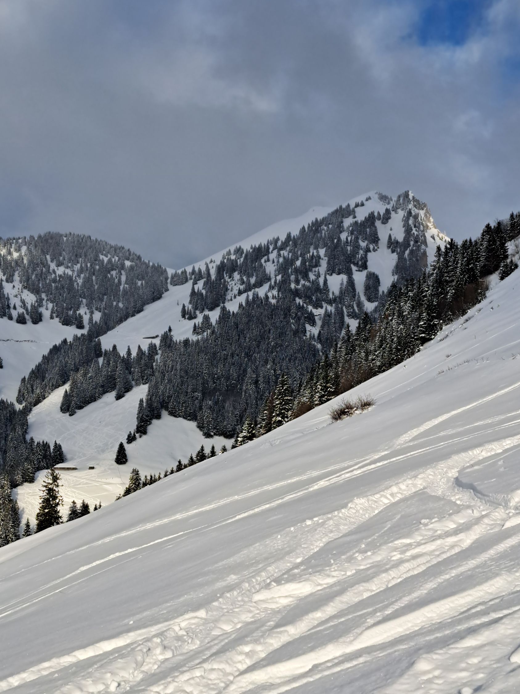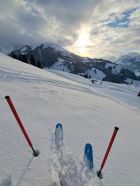 Bin zuerst auf le Van über Alp,gut gespurt bis Gipfel,Abfahrt Flanke super Pulver bis Alp,ab da Schnee auf Gras,geht. mit etwas Vorsicht.